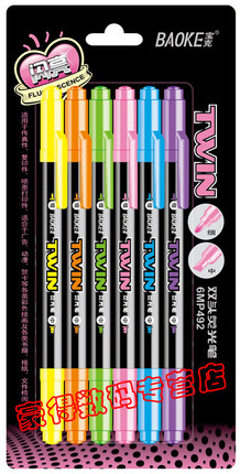宝克MP492双头荧光笔/套装6色荧光记号笔/标记笔