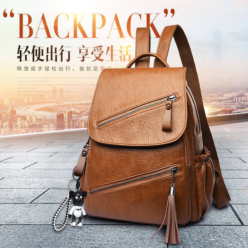 软皮质双肩包女2025新款女包包百搭旅行时尚韩版背包简约黑色书包