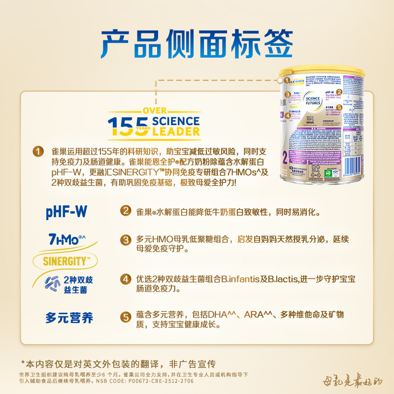 新版雀巢能恩全护2段7HMO益生菌适度部分水解低敏婴儿奶粉350g