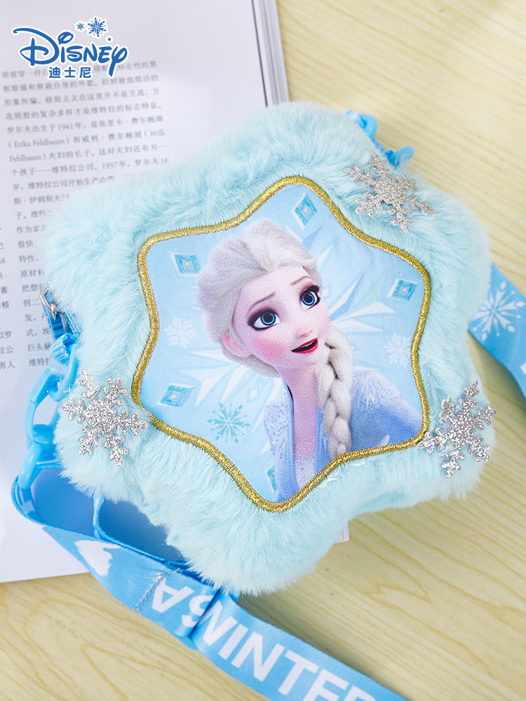 迪士尼儿童包包冰雪奇缘爱莎公主女童斜挎包毛绒小包女孩女可爱