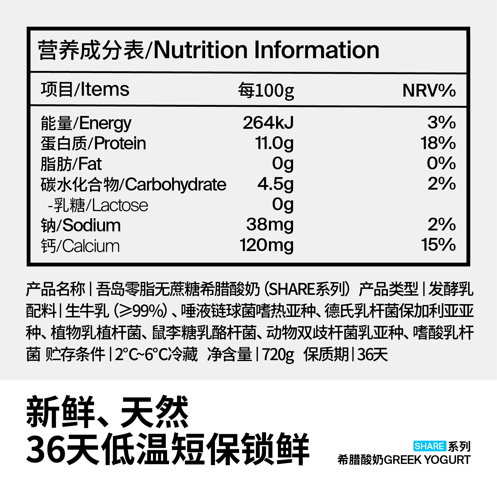 Oarmilk吾岛希腊酸奶无蔗糖零脂肪大桶装高蛋白浓稠型家庭装低温