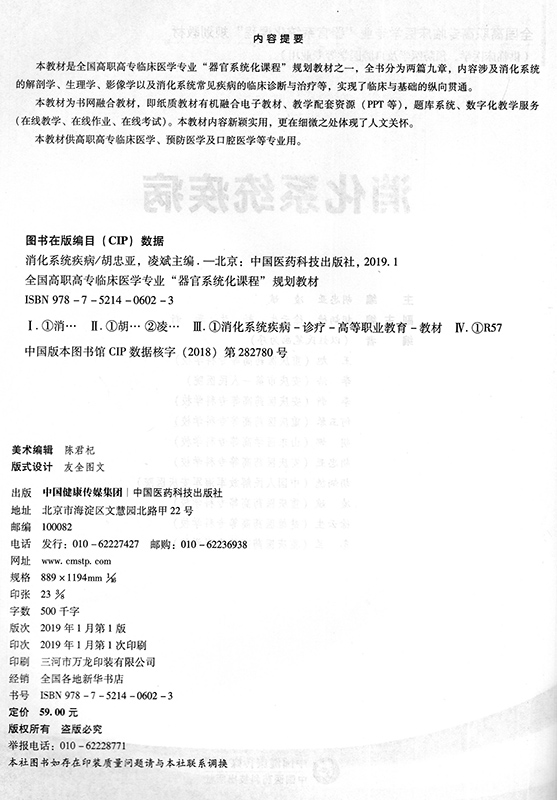 正版现货 消化系统疾病 全国高职高专临床医学专业 器官系统化课程 规划教材 中国医药科技出版社 胡忠亚 凌斌