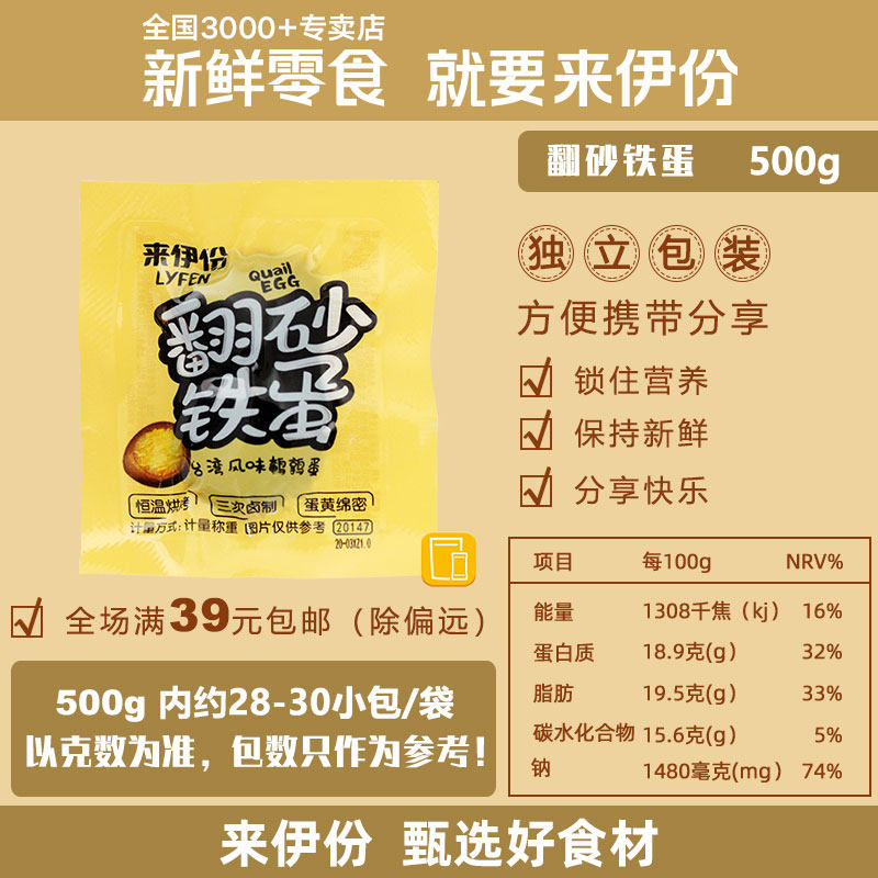 来伊份翻砂铁蛋500g台湾风味鹌鹑蛋卤蛋休闲零食小吃茶点小包散装