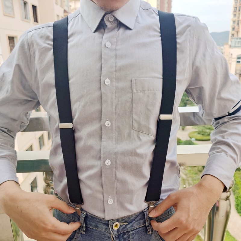 3.5cm男士背带 X形四夹西裤背带夹胖人4夹强力扣弹力吊裤带松紧