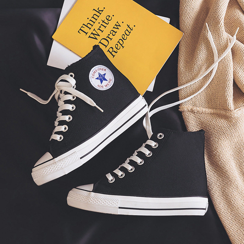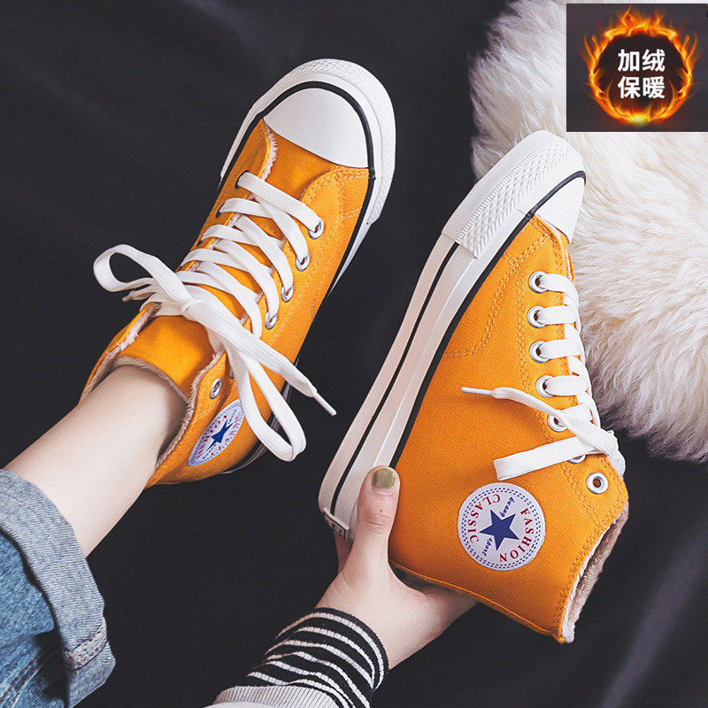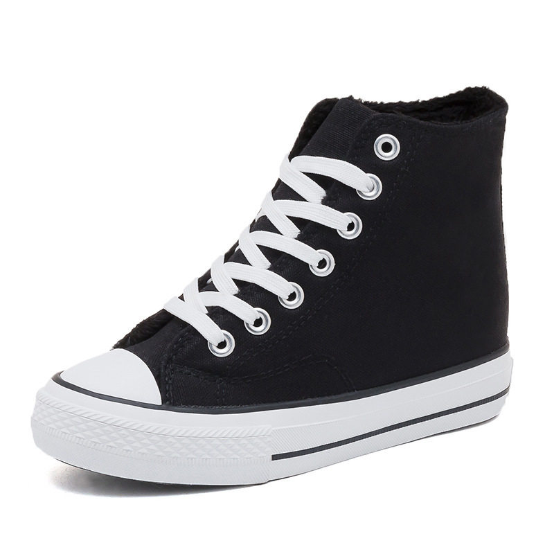 秋冬季隐形内增高6cm厚底松糕帆布鞋女学生保暖加绒高帮棉鞋子潮