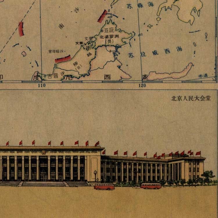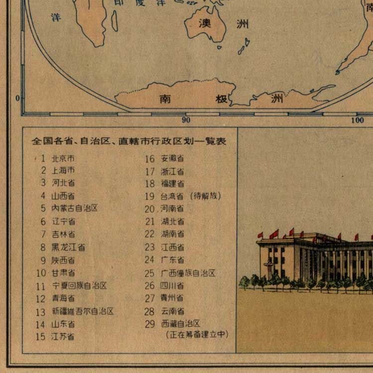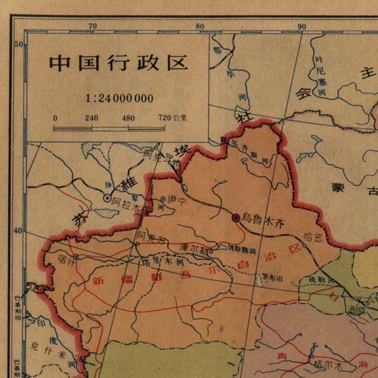 1962年共和国竖版地图复古文艺牛皮纸画墙贴装饰画挂画 壁画 画芯