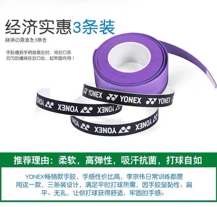 YONEX尤尼克斯 AC102C 148EX羽毛球拍网球拍手胶吸汗薄款三条装yy