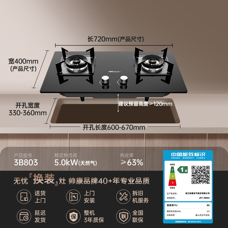 帅康3B801/803大火力可调节燃气灶家用厨房钢化玻璃液化气天然气