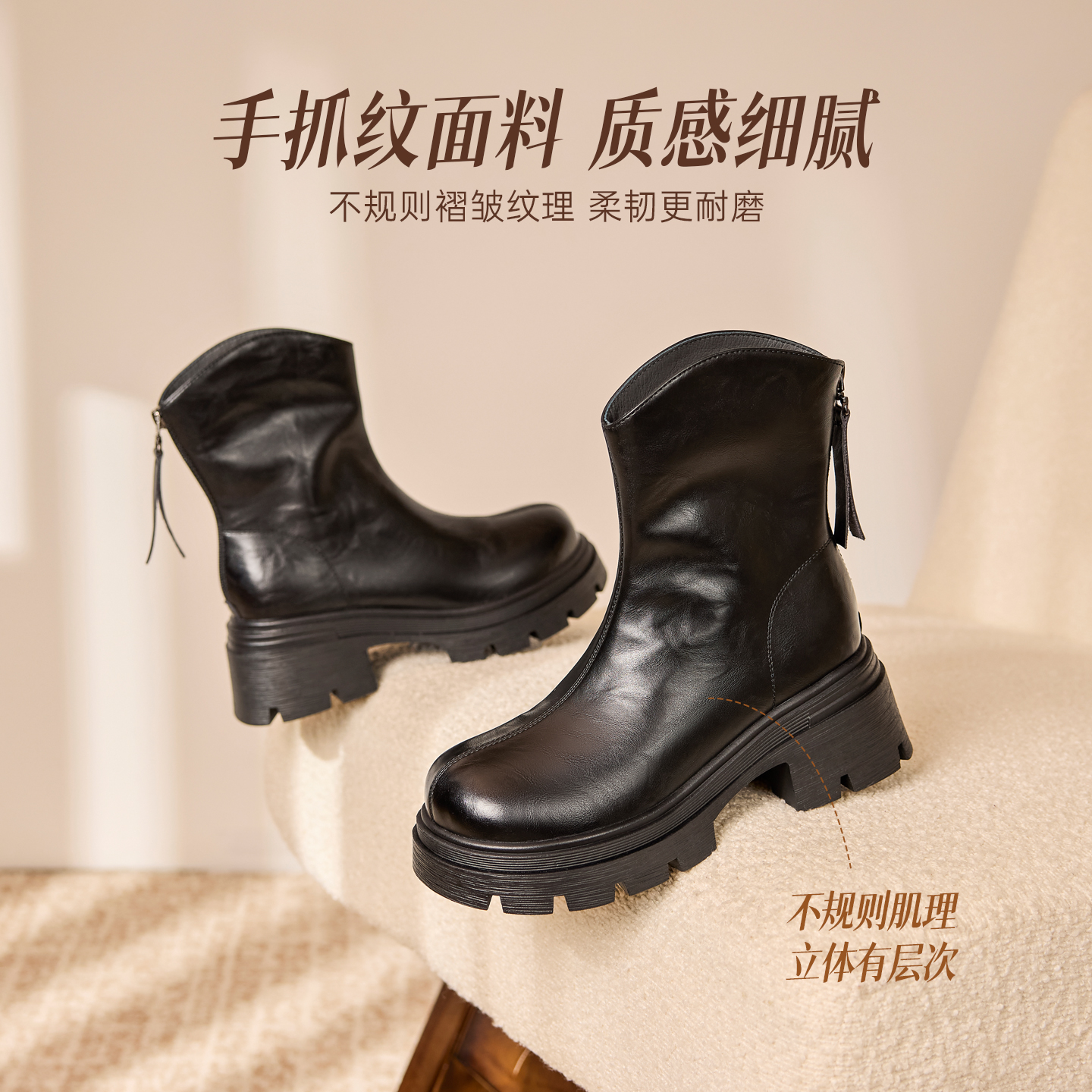 奥康 女鞋2025冬季时装靴复古手抓纹秋冬质感靴子增高小个子短靴