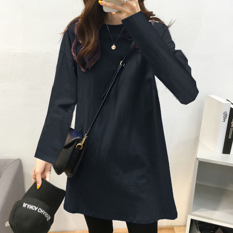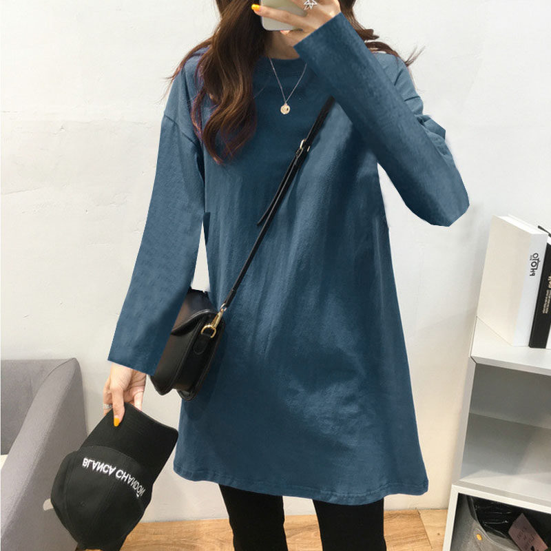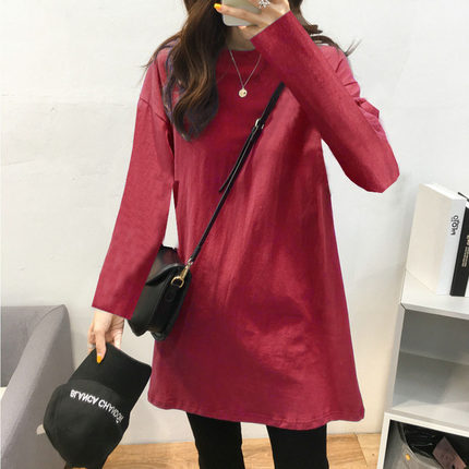 韩版春秋纯棉大码中长款打底衫女