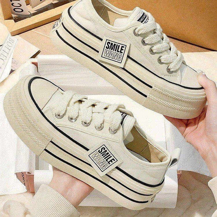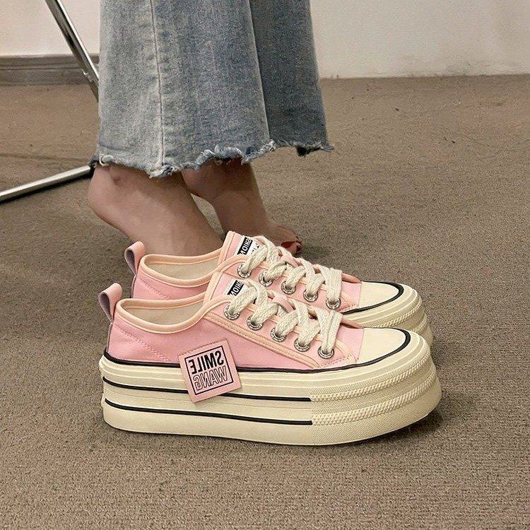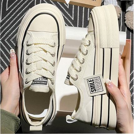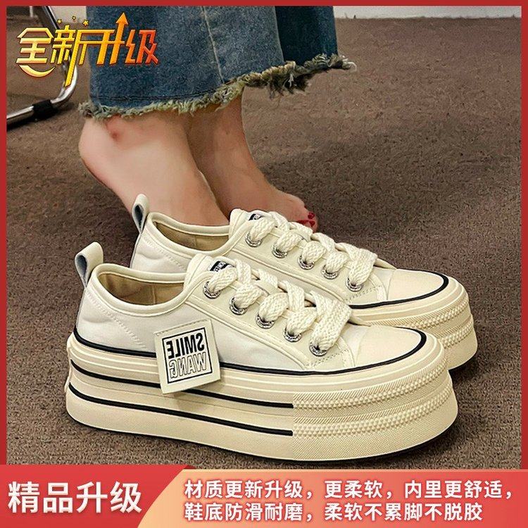 厚底帆布鞋女2025年春秋季新款松糕女鞋子爆款增高小白鞋透气板鞋