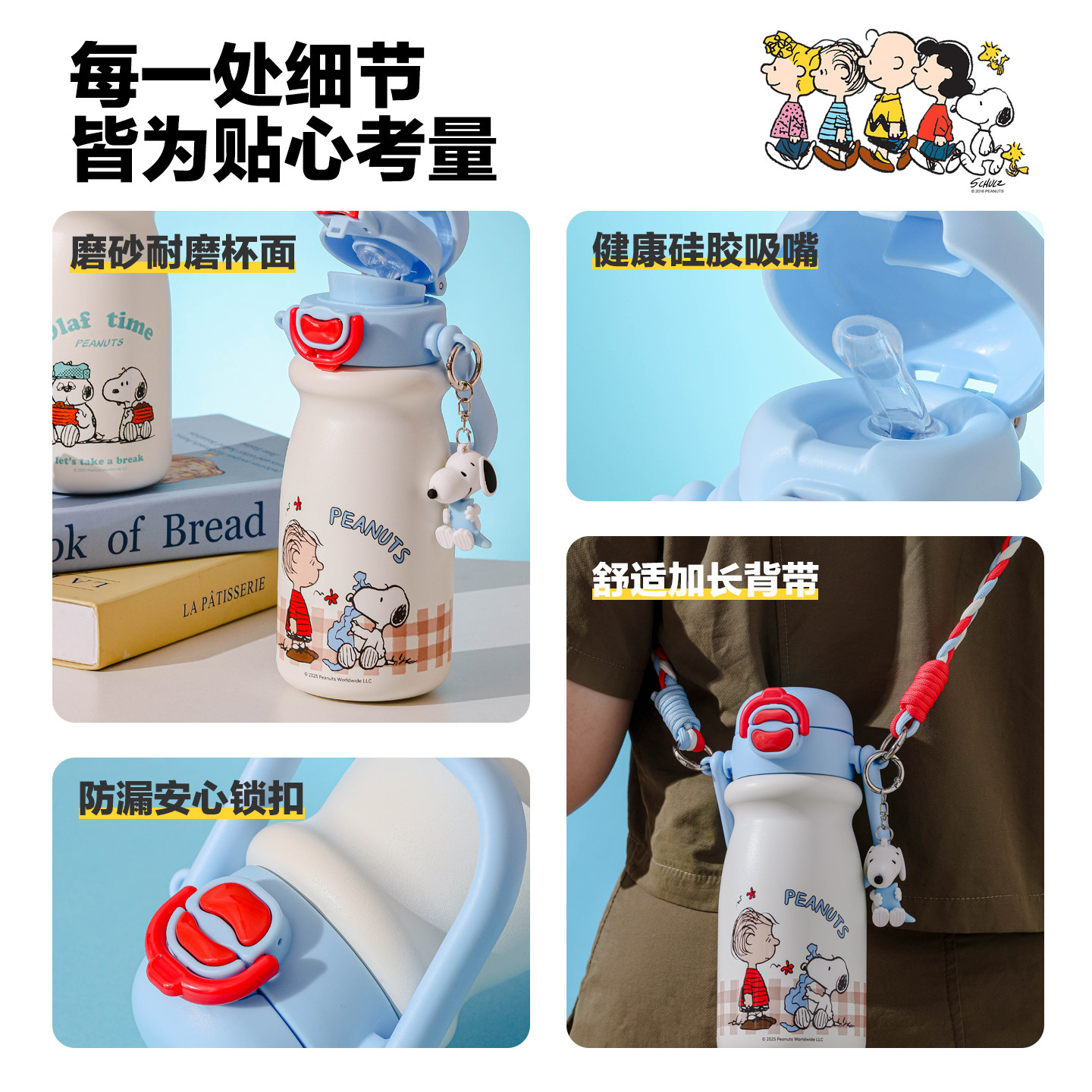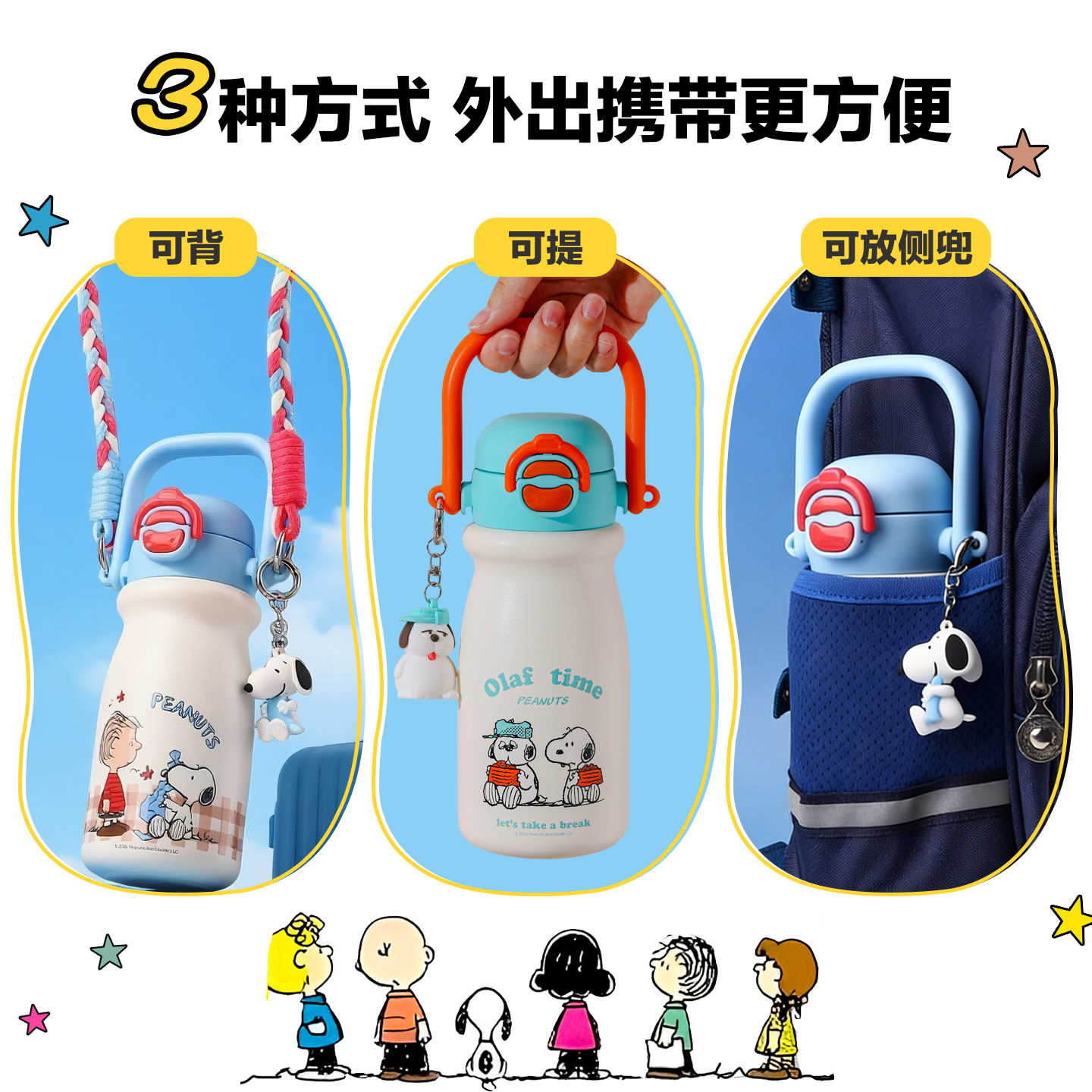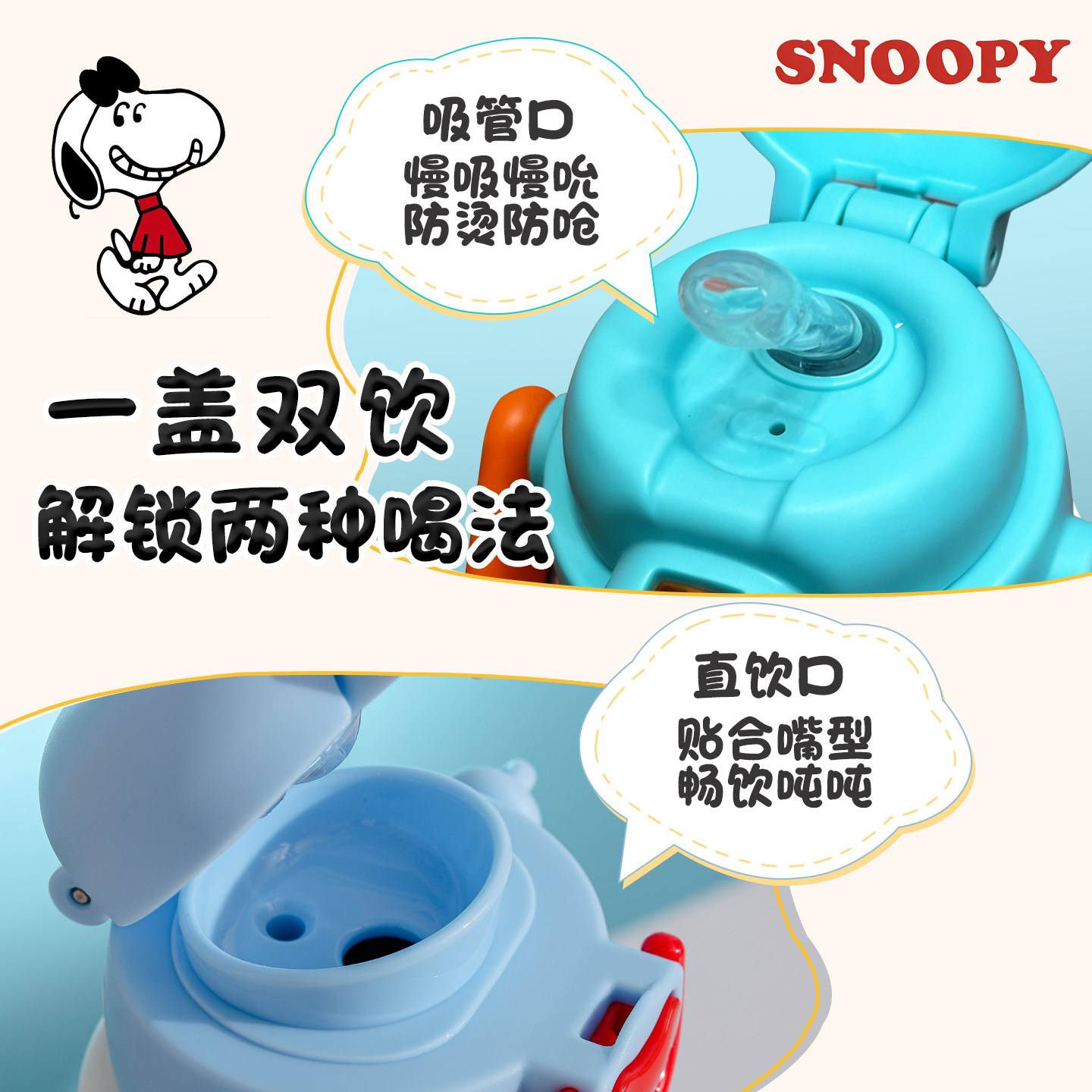 史努比小蛮腰保温杯儿童吸管水杯学生上学专用女孩男孩双饮口水杯
