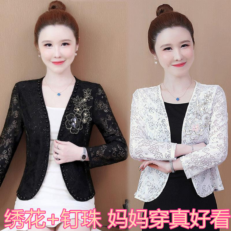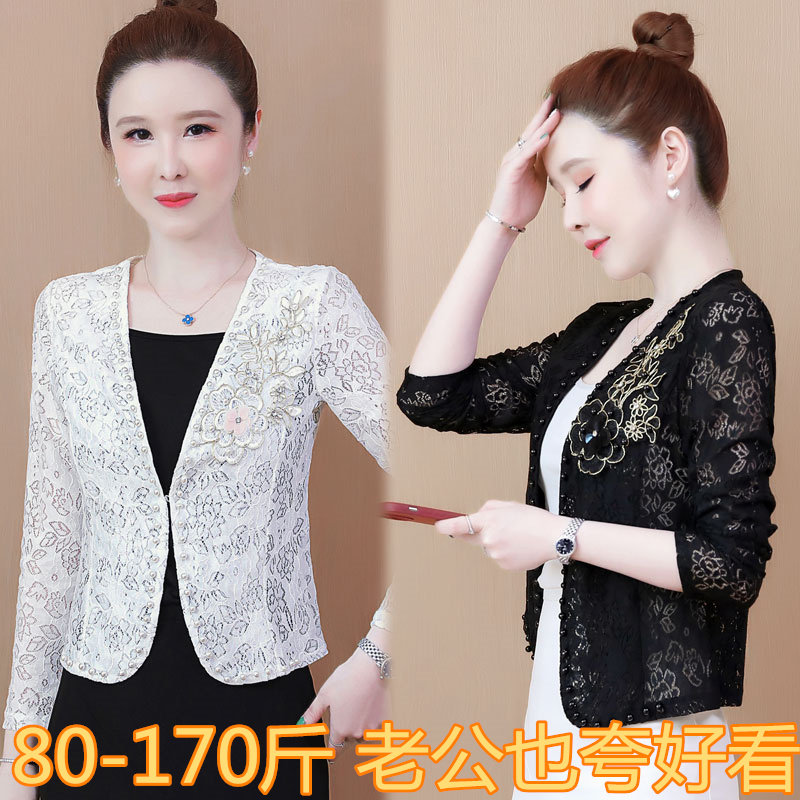 妈妈外搭女夏薄款2024新款短披肩外套配裙子蕾丝开衫旗袍外披坎肩