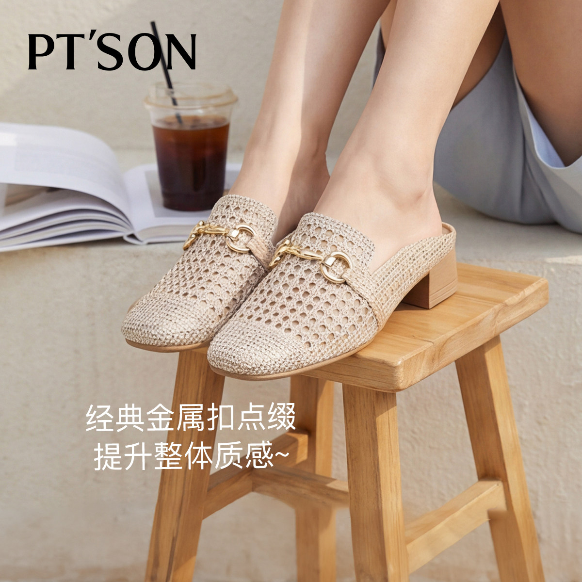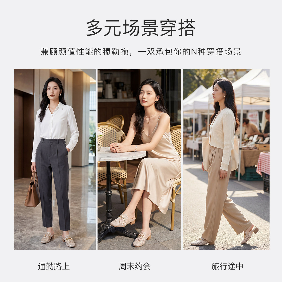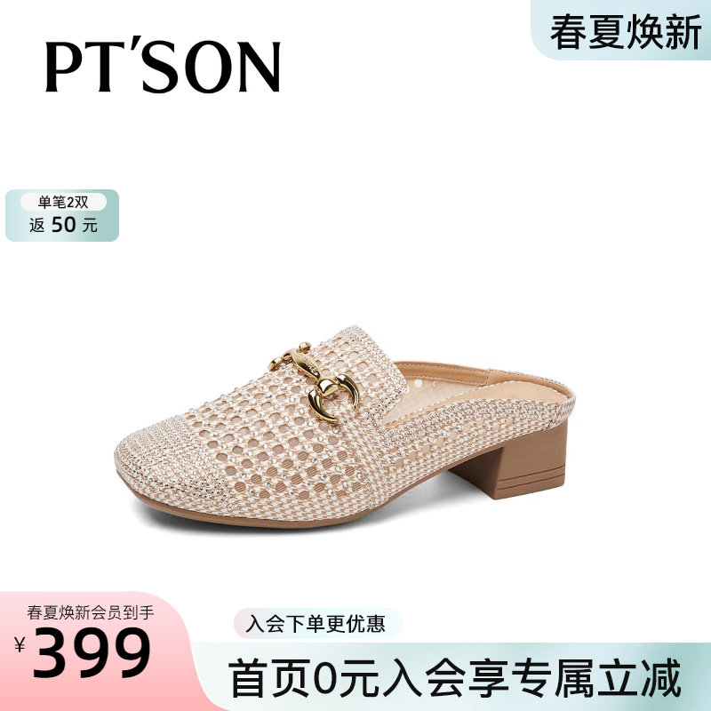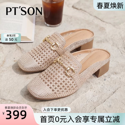 百田森商场同款穆勒鞋女春季一脚蹬英伦风高跟拖鞋慵懒包头拖鞋夏