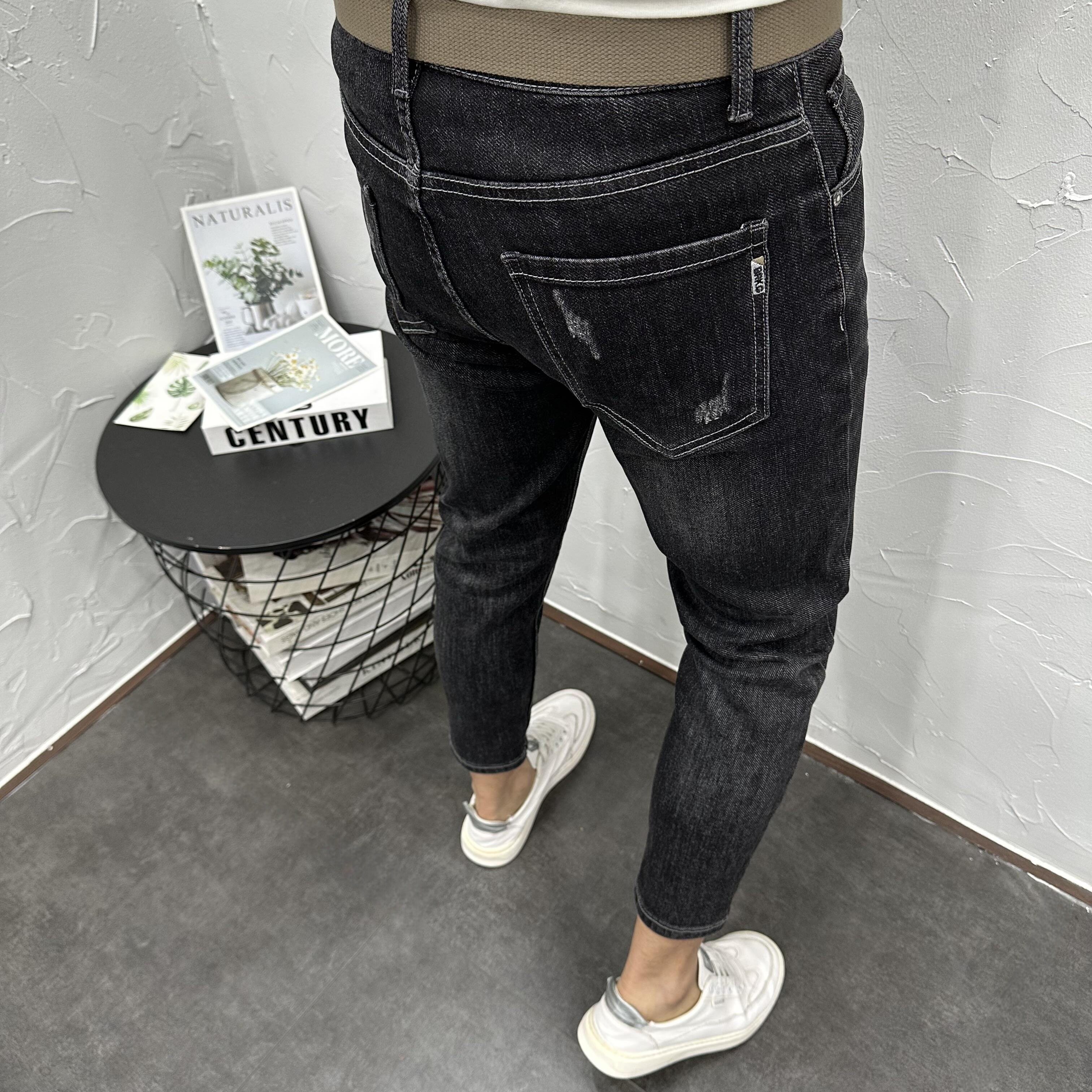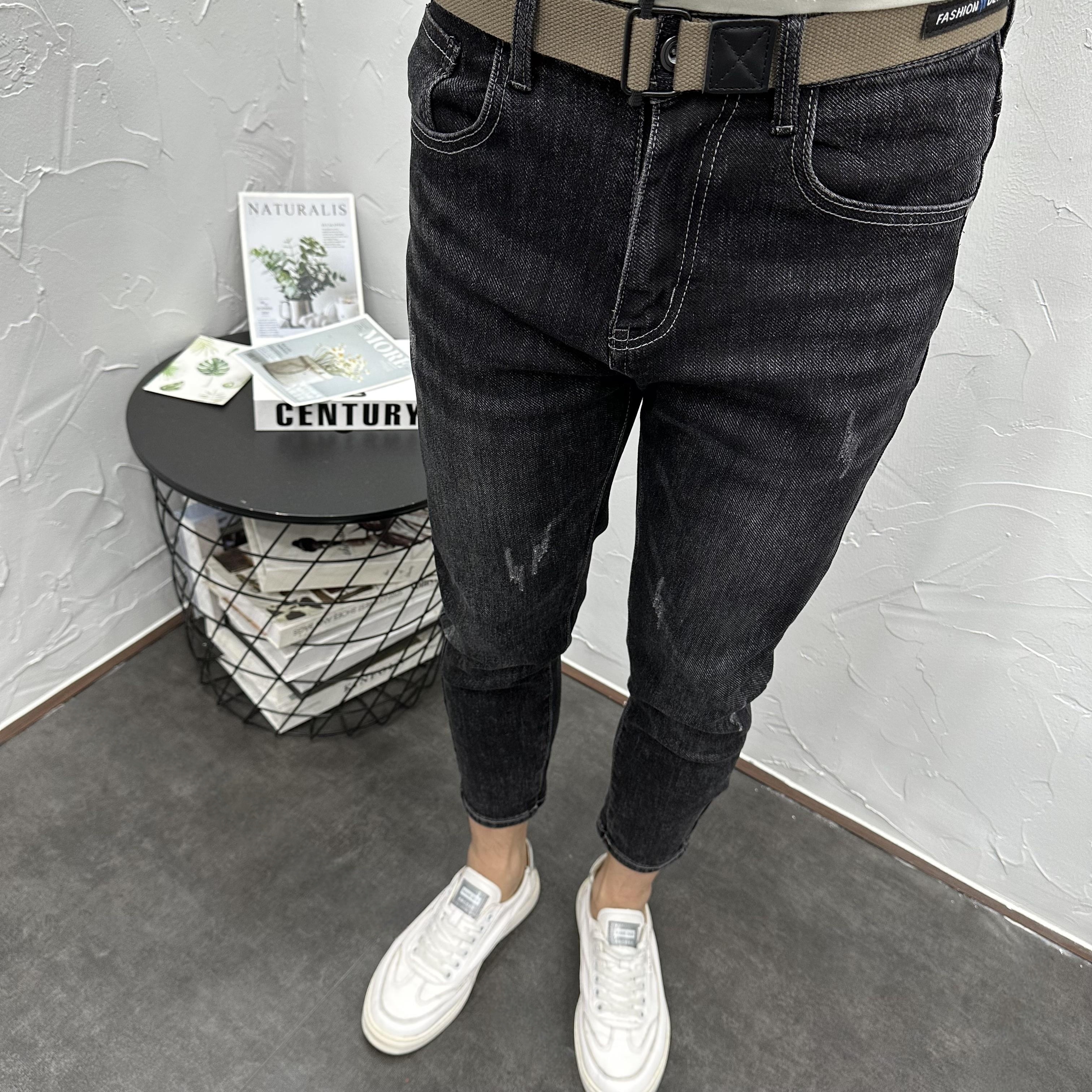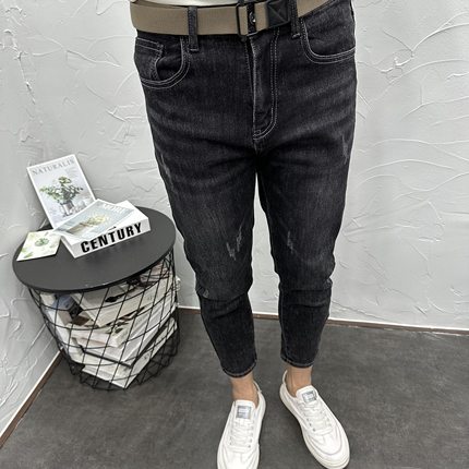 百搭水洗黑灰微跨修身小脚九分牛仔长裤男 夏秋潮流休闲弹力9分裤