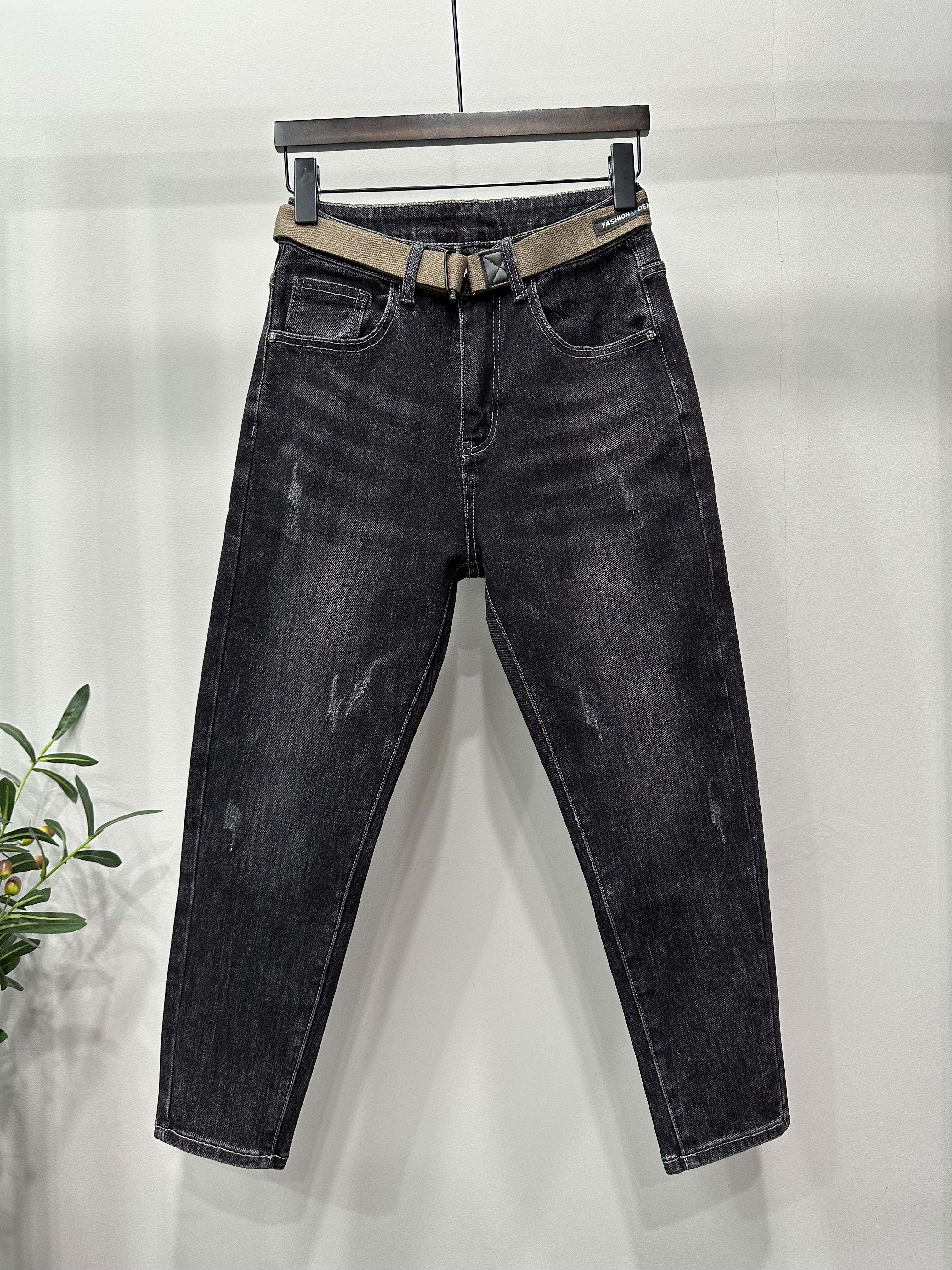 水洗黑灰微跨修身小脚九分牛仔裤