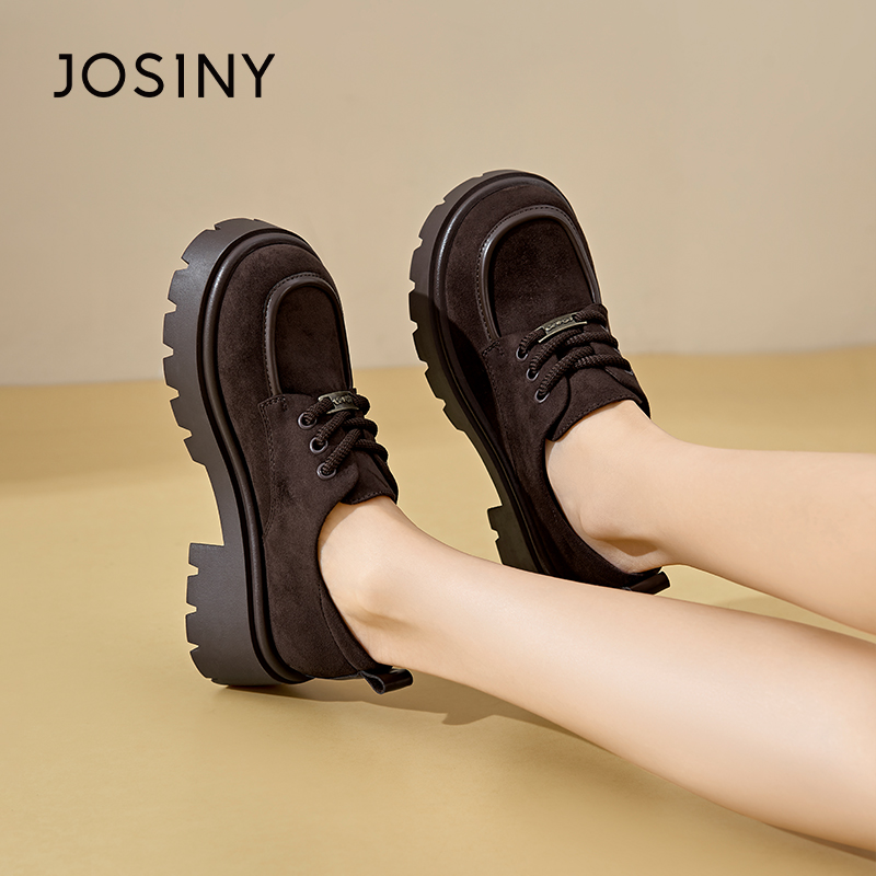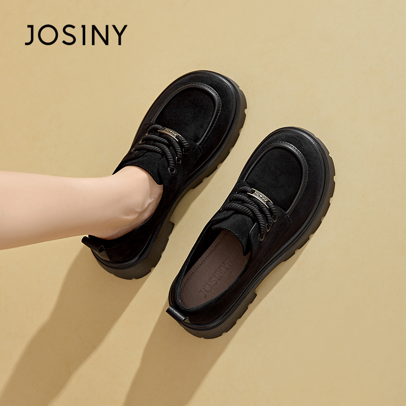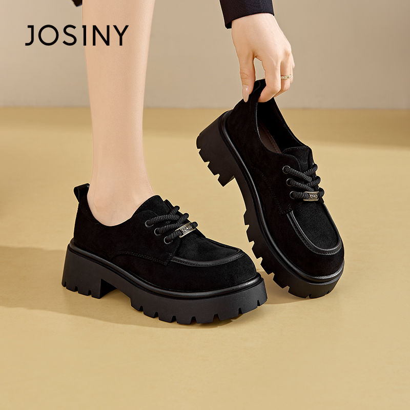 卓诗尼厚底增高小皮鞋女2025春秋新款复古单鞋休闲百搭工装乐福鞋