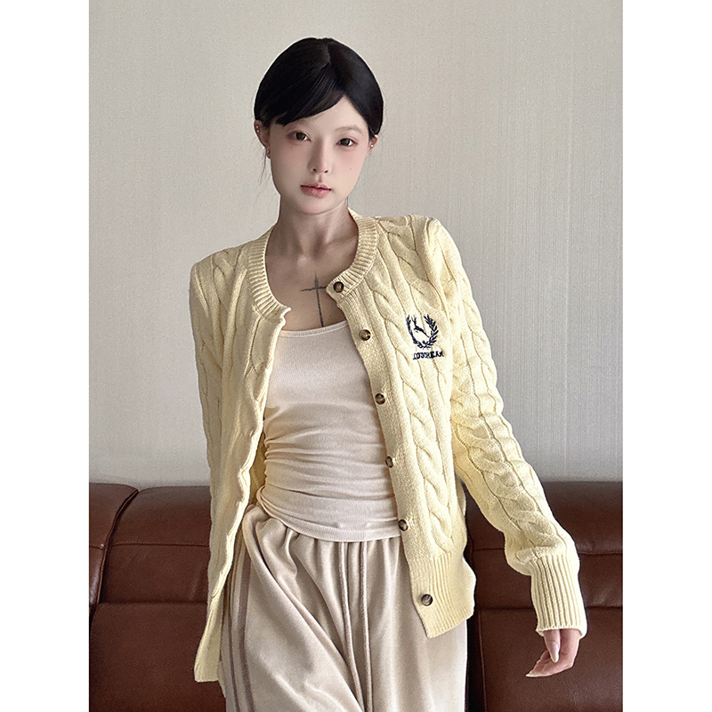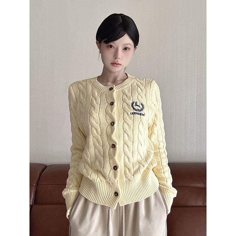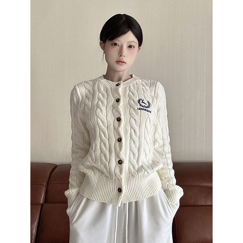 LKOD2024秋冬新款开衫女装短款外套针织衫修身开衫毛衣
