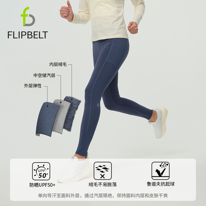 FlipBelt飞比特女秋冬高腰厚绒紧身跑步健身运动长裤提臀吸汗速干