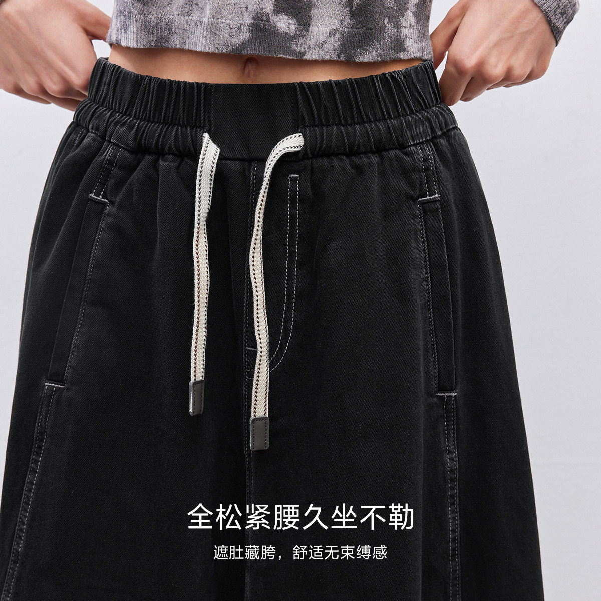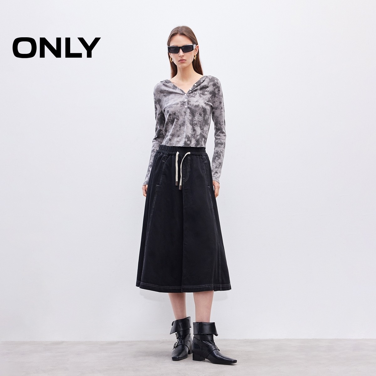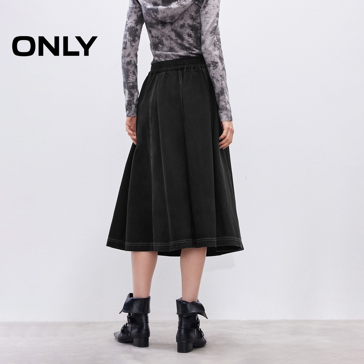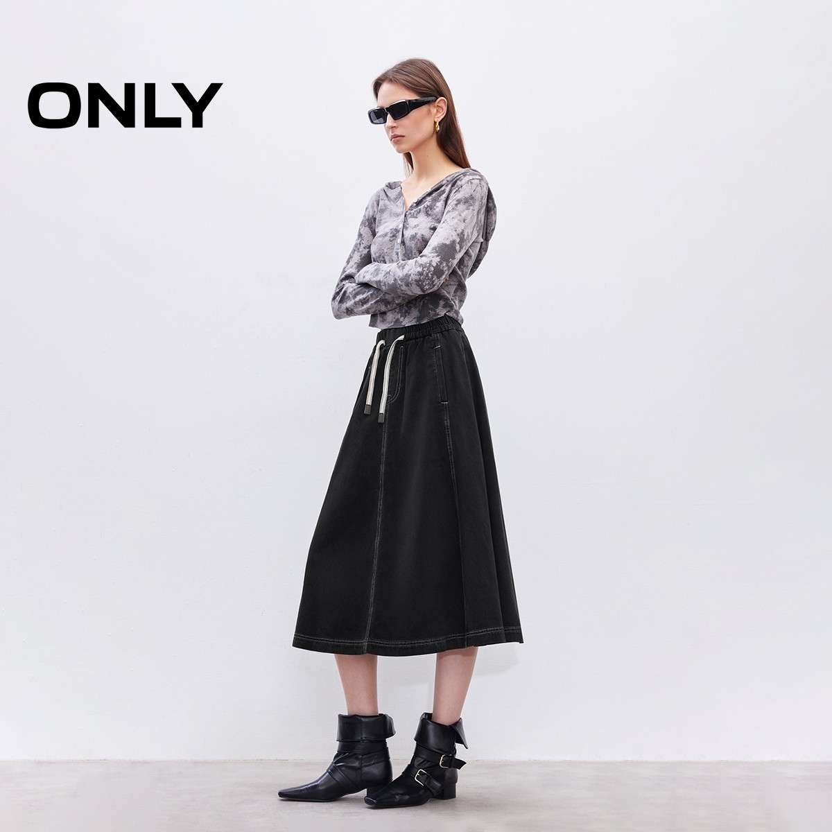 ONLY2025冬季新款松紧系带运动伞形撞色拼接剪裁纯棉A字半身裙女