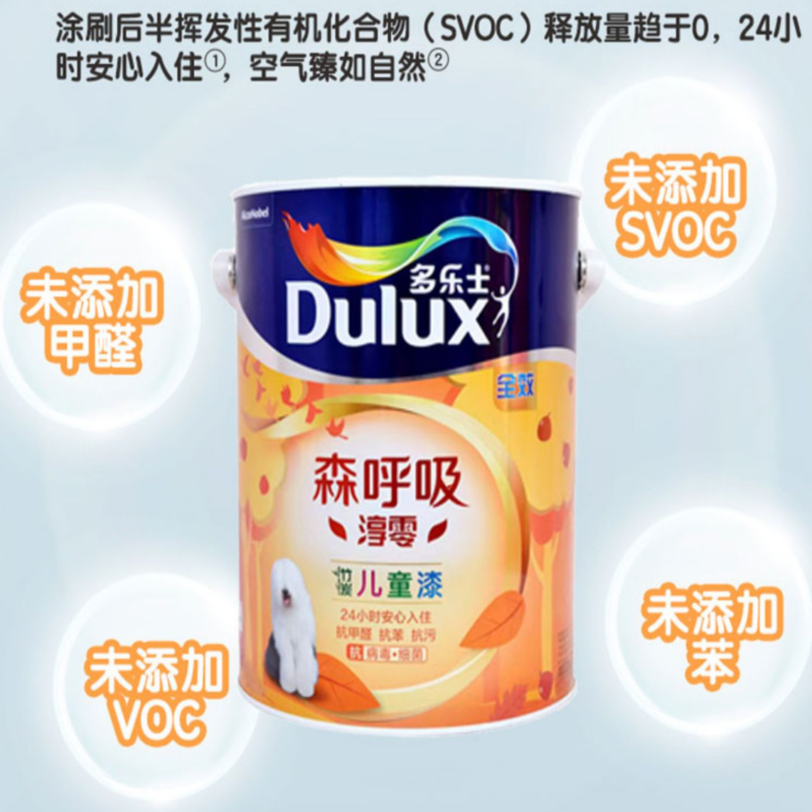 多乐士森呼吸淳零儿童漆竹炭全效乳胶漆儿童房无添加净味环保漆5L