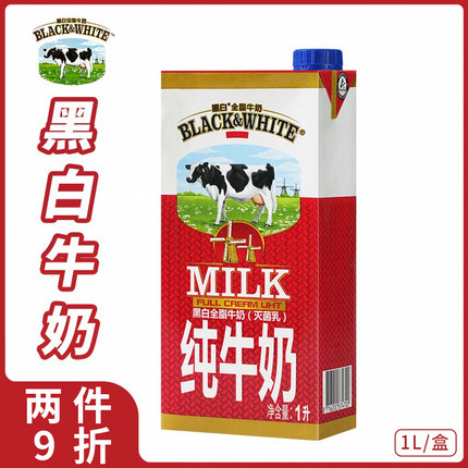 荷兰黑白牛奶全脂牛奶1L*12盒整箱 比利时原装进口纯牛奶商用烘焙