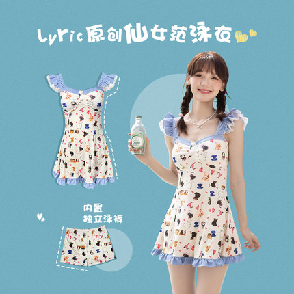 2025新款游泳衣女保守夏裙式连体学生少女显瘦遮肚泡温泉绝美泳装