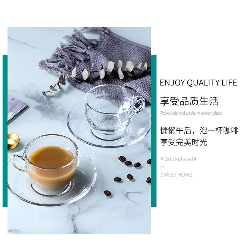 玻璃杯水杯家用套装加厚耐热茶杯花茶杯咖啡杯碟套装欧式透明杯子