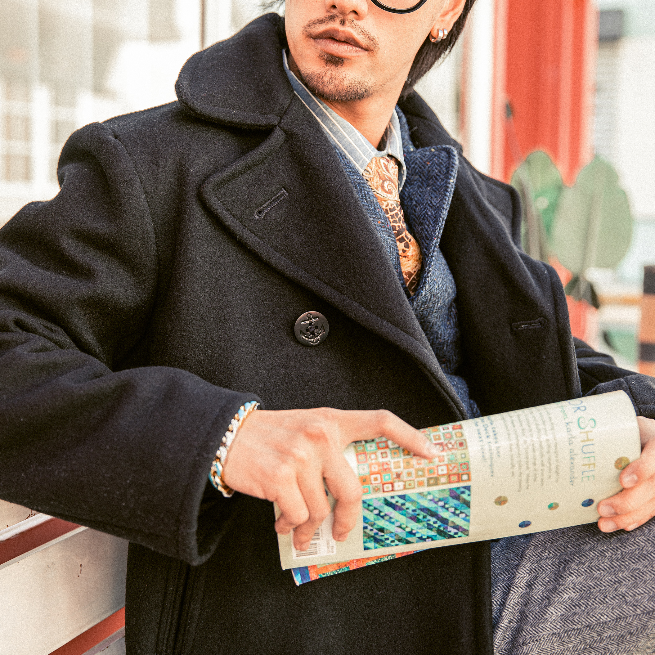 红风 740海军羊毛呢外套pea coat中长款双排扣宽松复古双面呢大衣