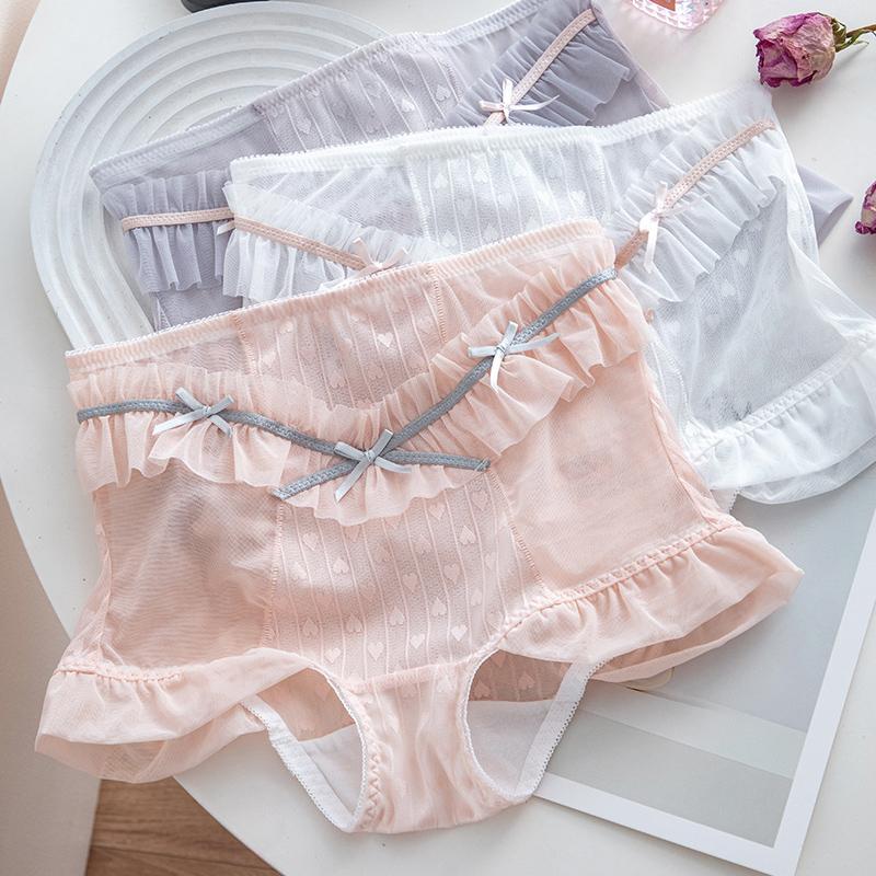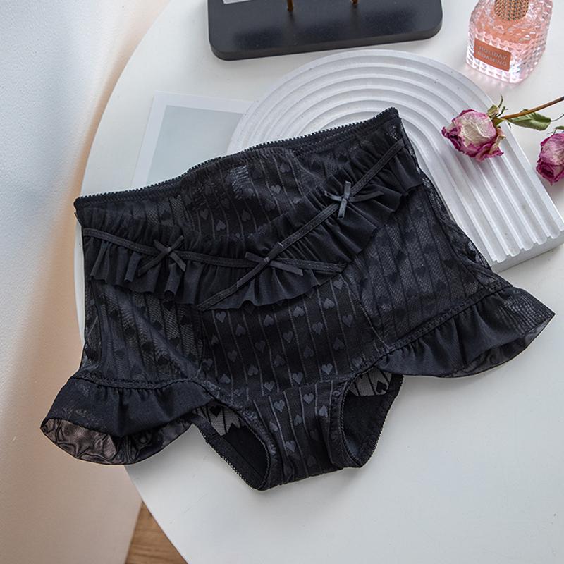 高腰轻收腹内裤女士2025新款性感网纱蝴蝶结飞边全棉裆少女三角裤