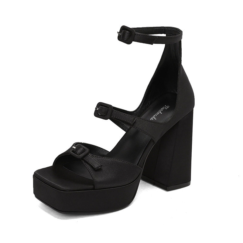 小众款时尚蝴蝶结10.5厘米高跟鞋女夏真皮小个子显瘦粗跟露趾凉鞋