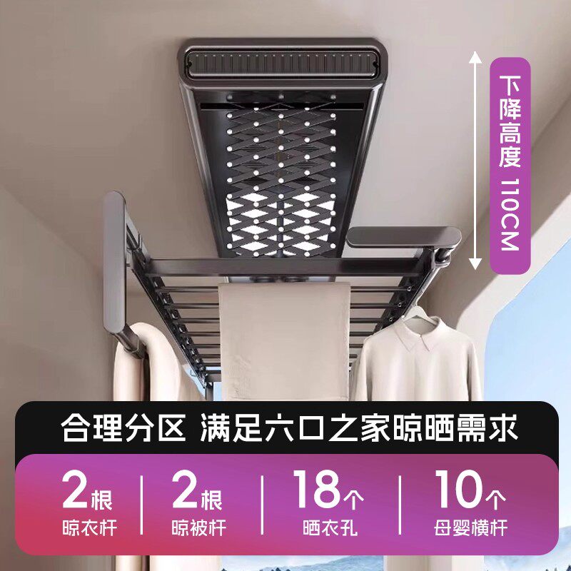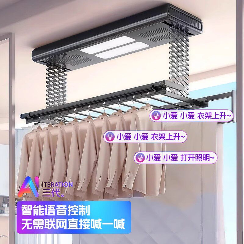 亿家好太太电动晾衣架遥控升降照明语音家用阳台烘干杀菌晒衣杆机