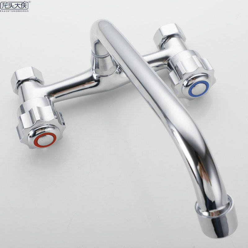 铜入墙式厨房水龙头冷热阳台拖把池洗衣池洗面盆双把双孔龙头