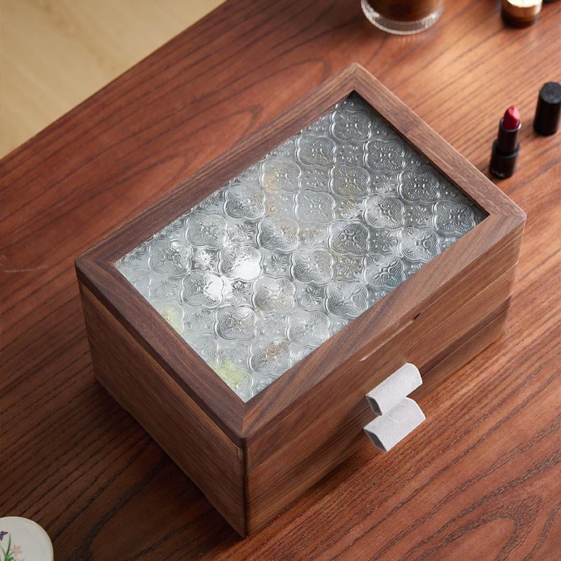 黑胡桃木首饰收纳盒实木大容量轻奢复古戒指项链盒情人节礼物精致