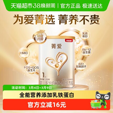 贝因美菁爱婴儿配方牛奶粉1段150g含益生菌DHA新生0-6月婴儿奶粉