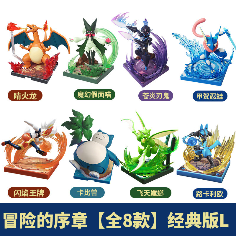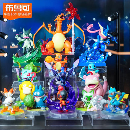 布鲁可宝可梦路卡利欧比卡兽皮卡丘呆呆兽妙蛙种子喷火龙拼装手办