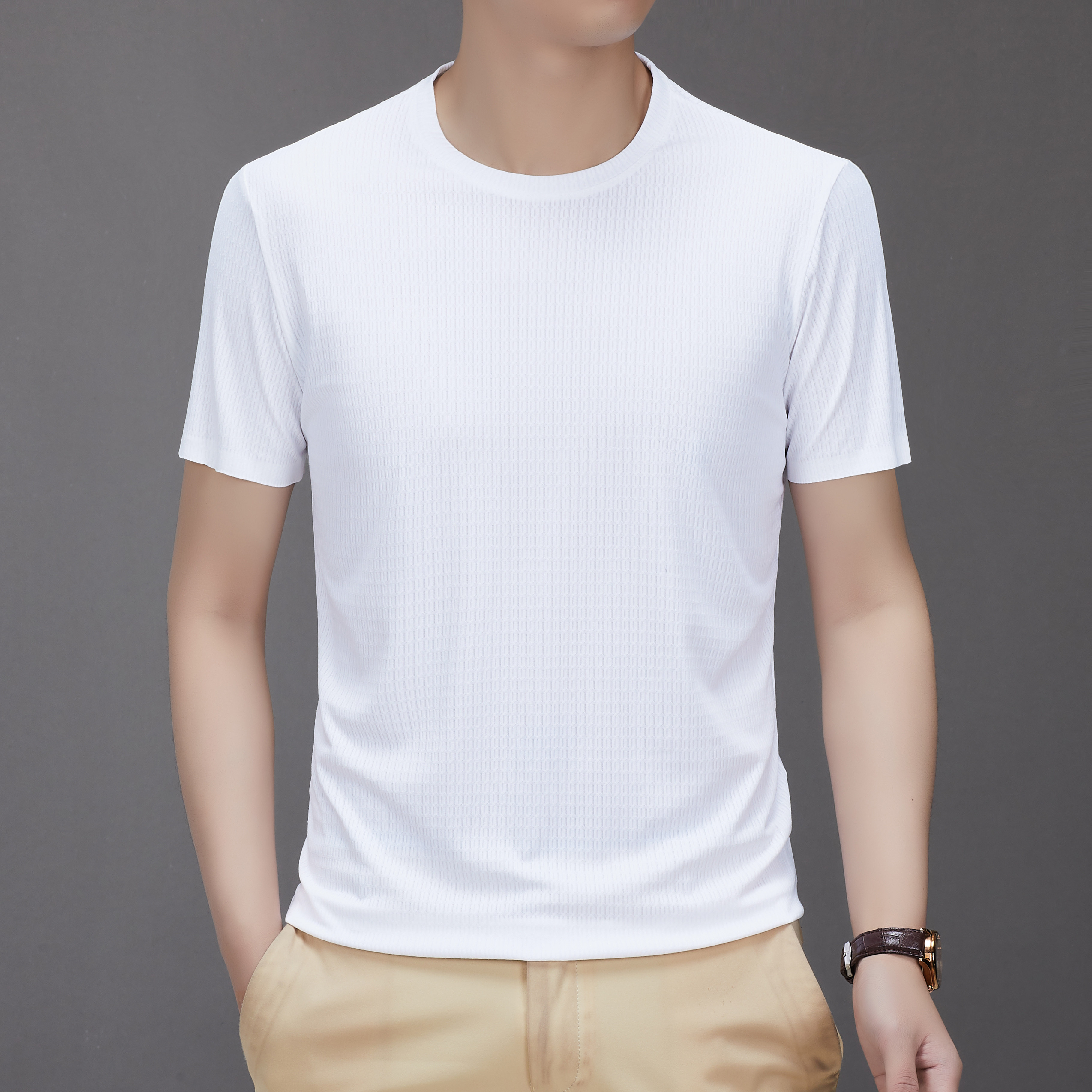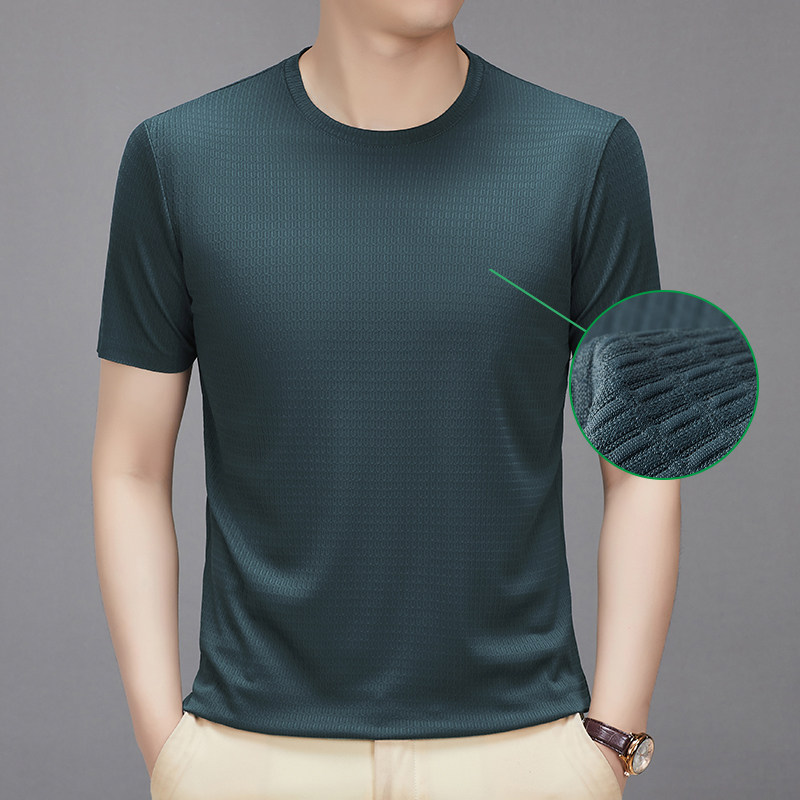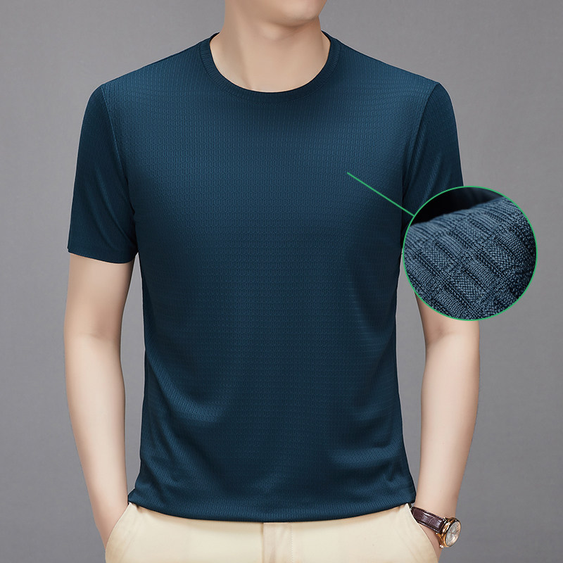 鄂尔多斯市短袖t恤男款官方正品纯桑蚕丝短袖t恤圆领夏新款冰丝装