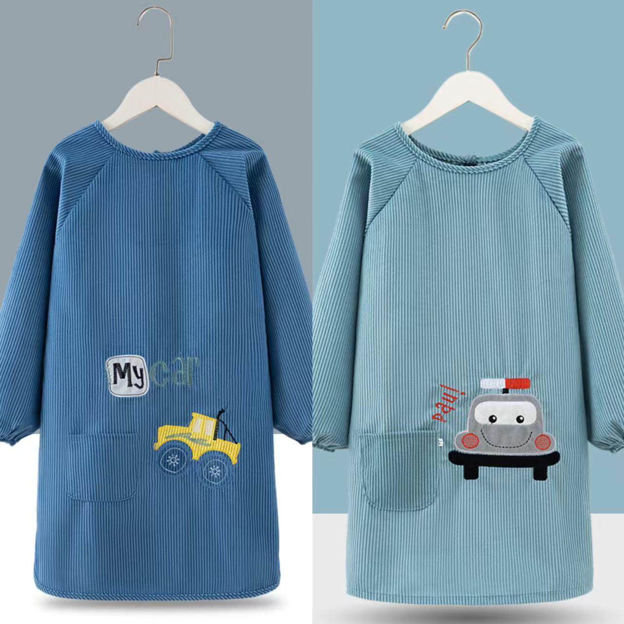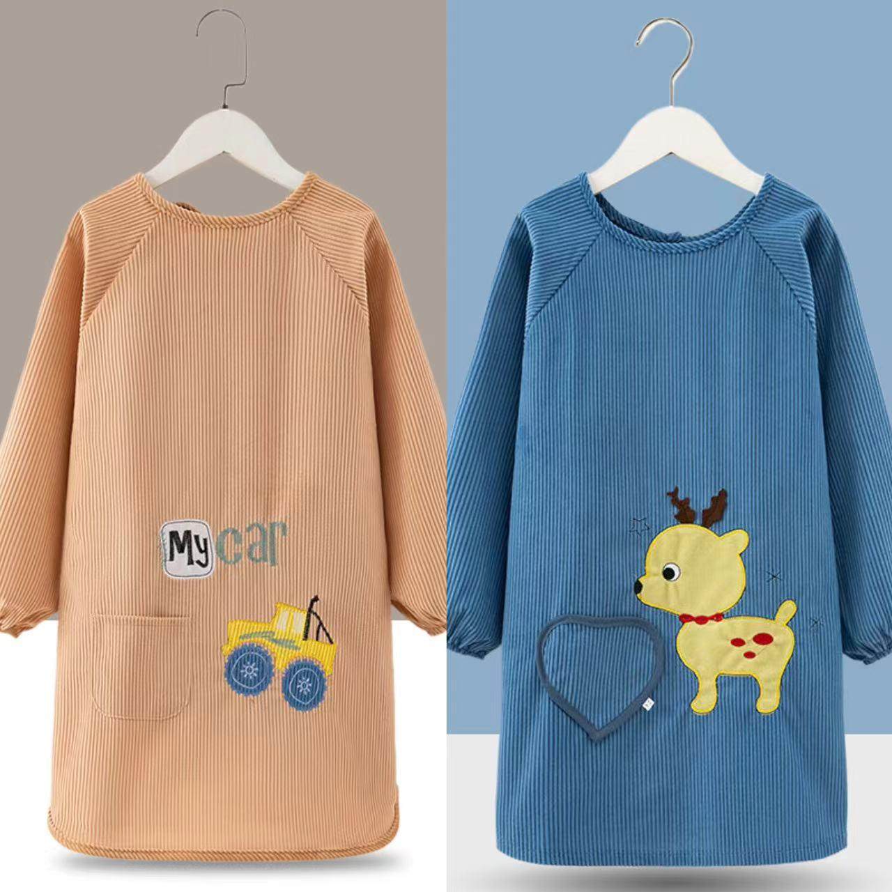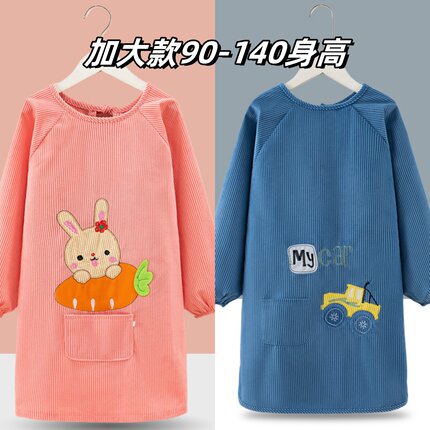 加长宝宝秋冬防水罩衣大童吃饭围兜小孩灯芯绒反穿衣护衣幼儿园大