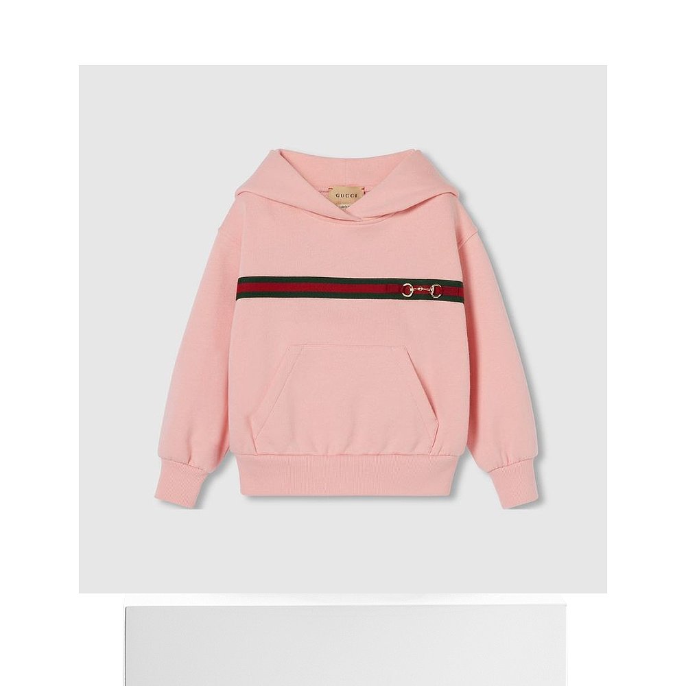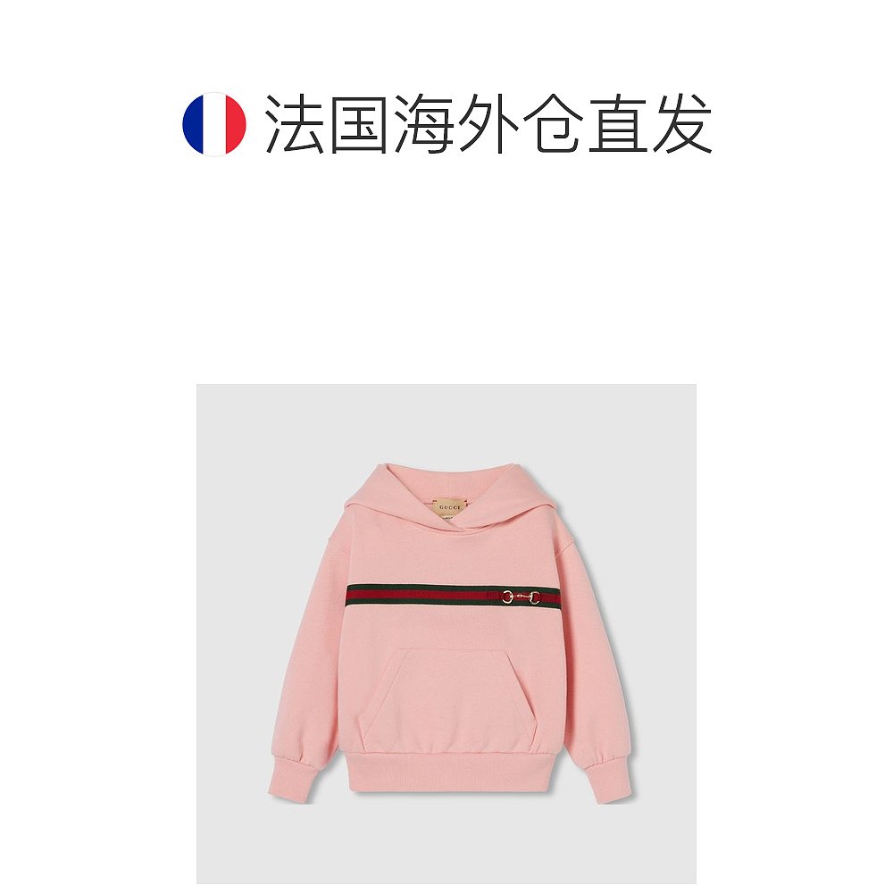 自营欧洲直邮Gucci古驰女孩粉色的儿童织带条纹棉质运动衫