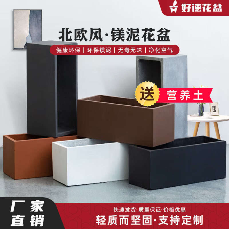 花盆长方形水泥花盆北欧长条马槽客厅阳台户外种菜镁泥花箱大绿植