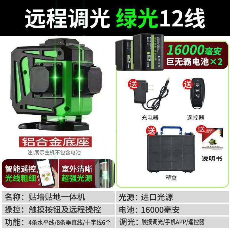 进口绿光12线水平仪高精度蓝光16线贴墙贴地仪全自动打线墙地一体
