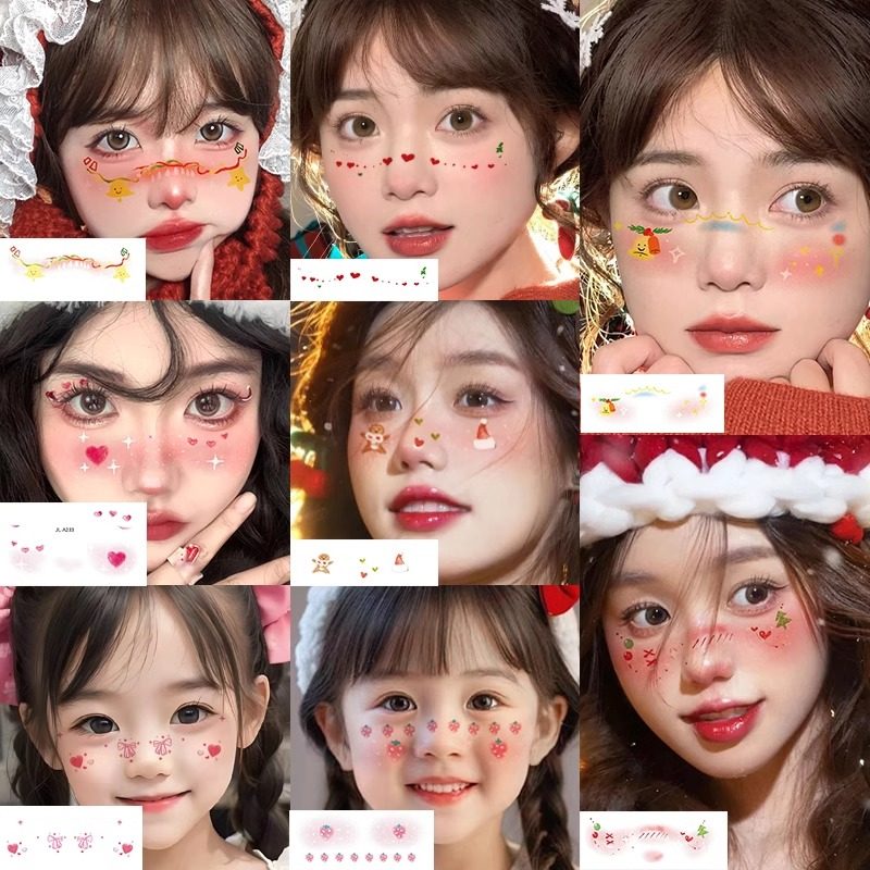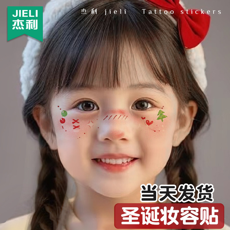 新年贴纸过年春节妆容脸贴女孩儿童纹身贴可洗脸部可爱卡通福字贴烟花炮竹化妆面部小男孩跨年拍照道具定制
