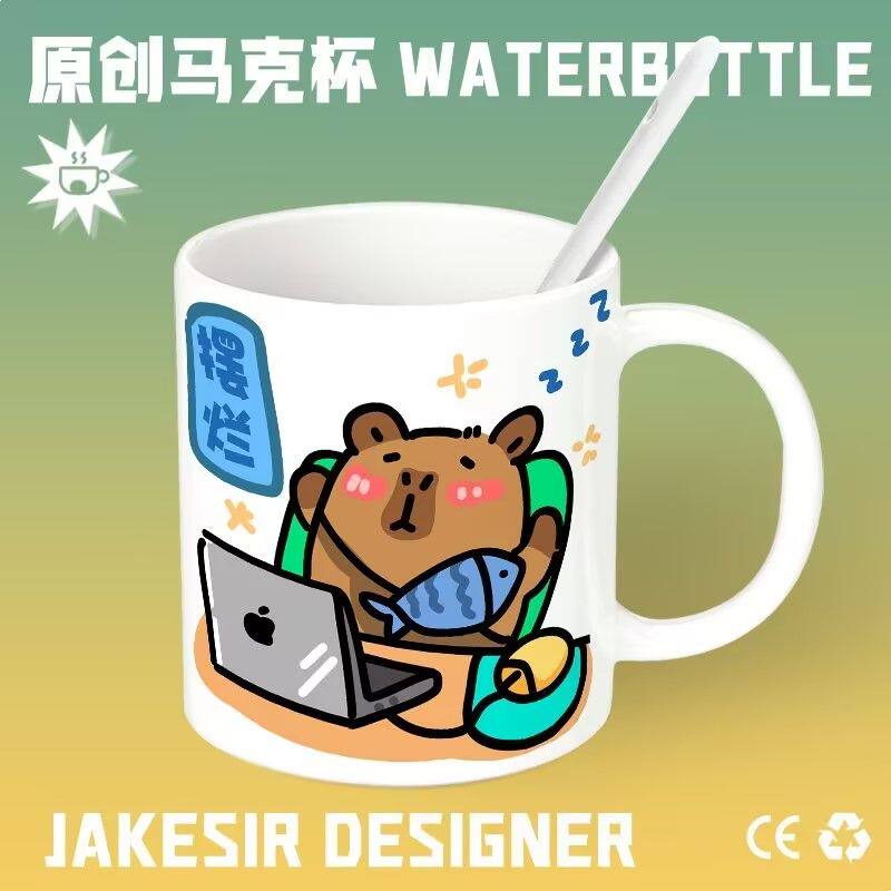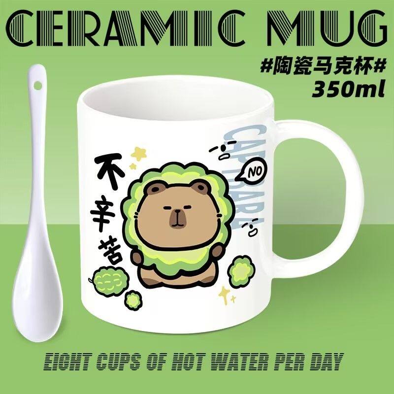 新款卡皮巴拉可爱周边个性卡通陶瓷喝水家用牛奶杯办公咖啡马克杯