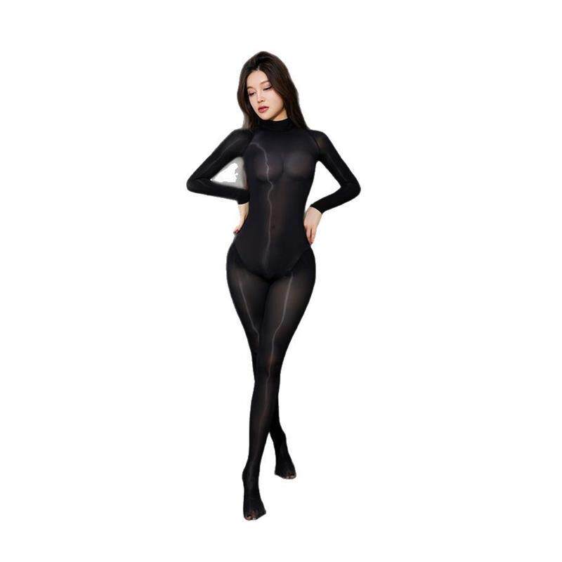 马油5d叉连体衣五指连体丝袜油亮开档伪娘CD全包紧身丝袜女士性感