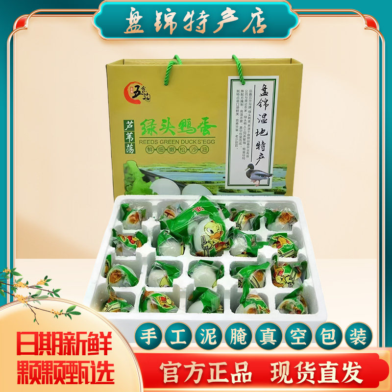 盘锦芦苇荡绿头鸭蛋农家散养泥腌蛋咸鸭蛋鲜香流油即食20枚礼盒装