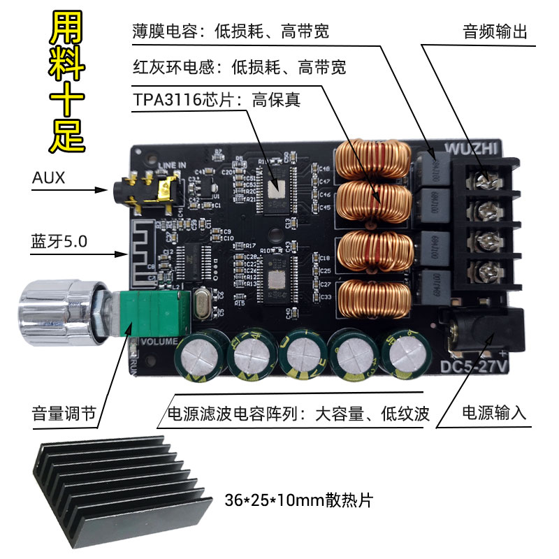 ZK-1002 100WX2 HIFI级大功率2.0立体声蓝牙数字功放板TPA3116