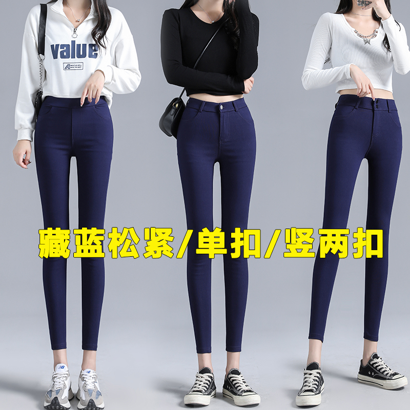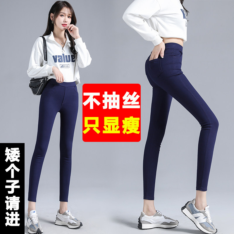 蓝色打底裤女春秋高弹力外穿小个子魔力裤八分9分铅笔裤女小脚8分