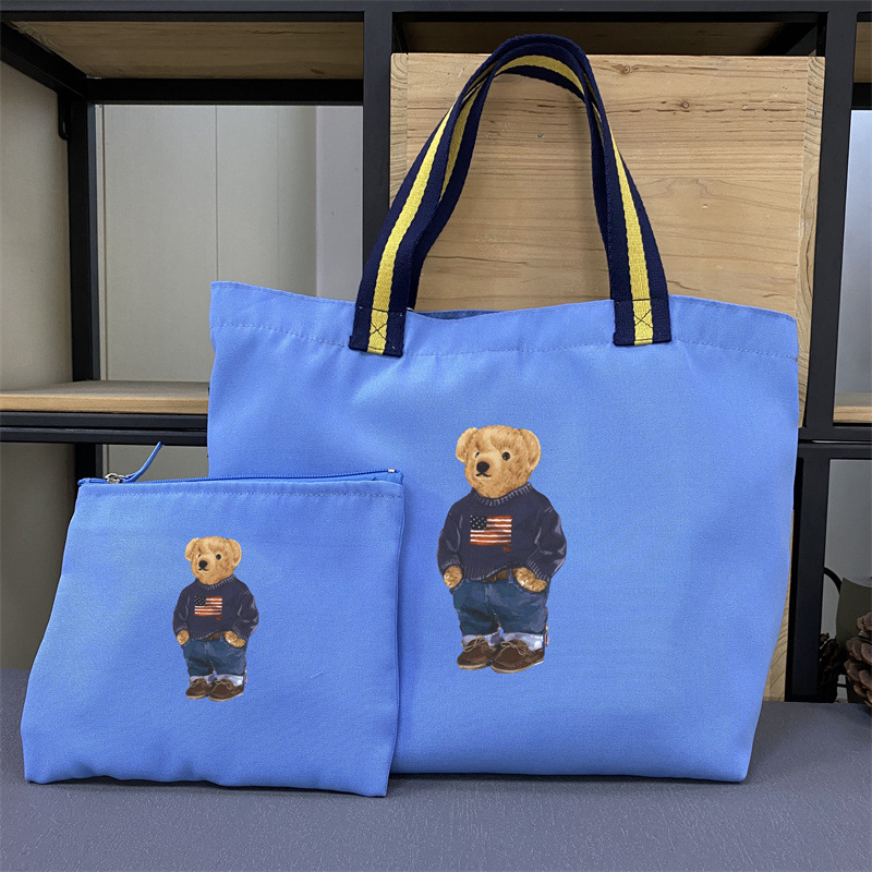 乐天新款包包polo小熊印花毛衣牛仔裤熊帆布包购物袋子母包包袋