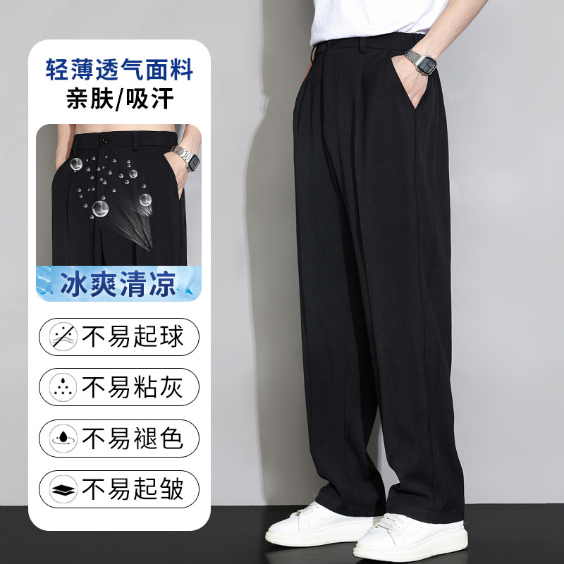 罗蒙冰丝休闲裤男士2025夏季新薄款阔腿直筒西装裤垂感宽松长裤子