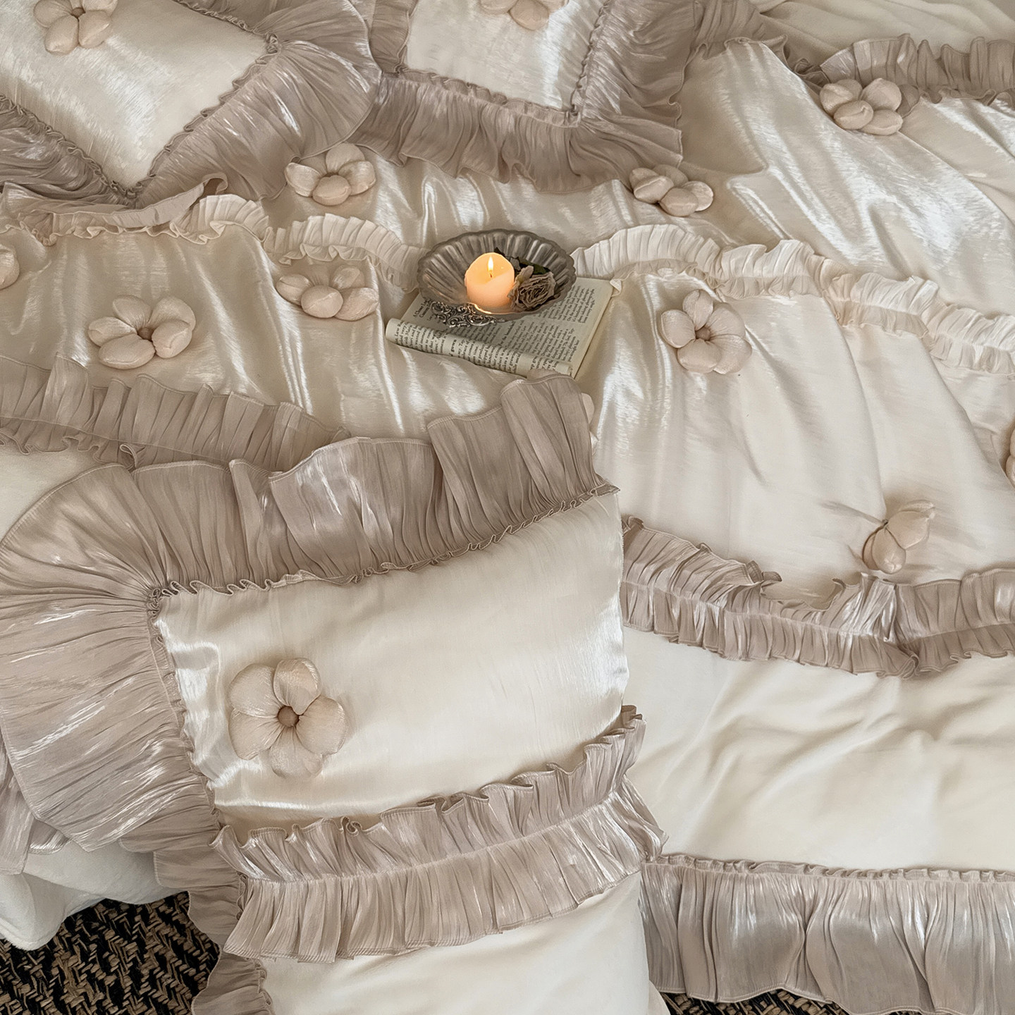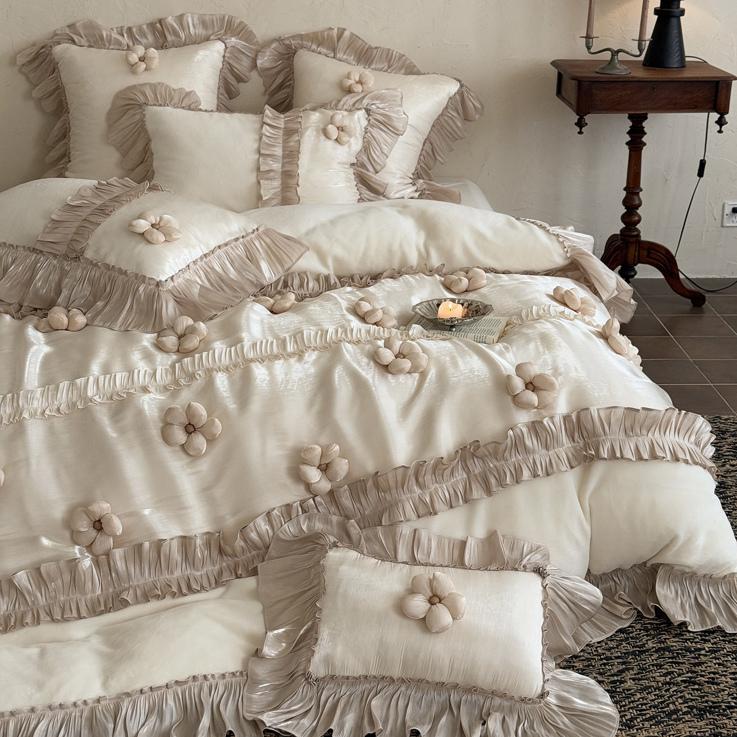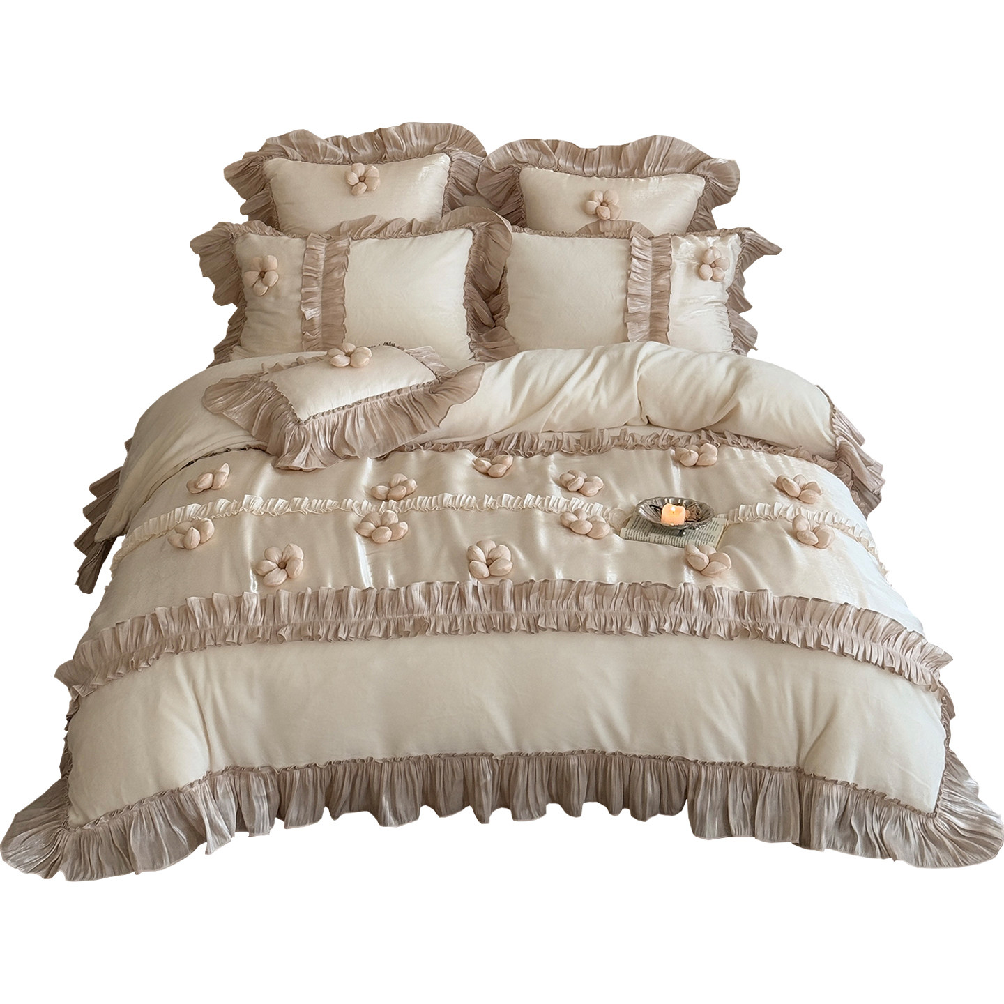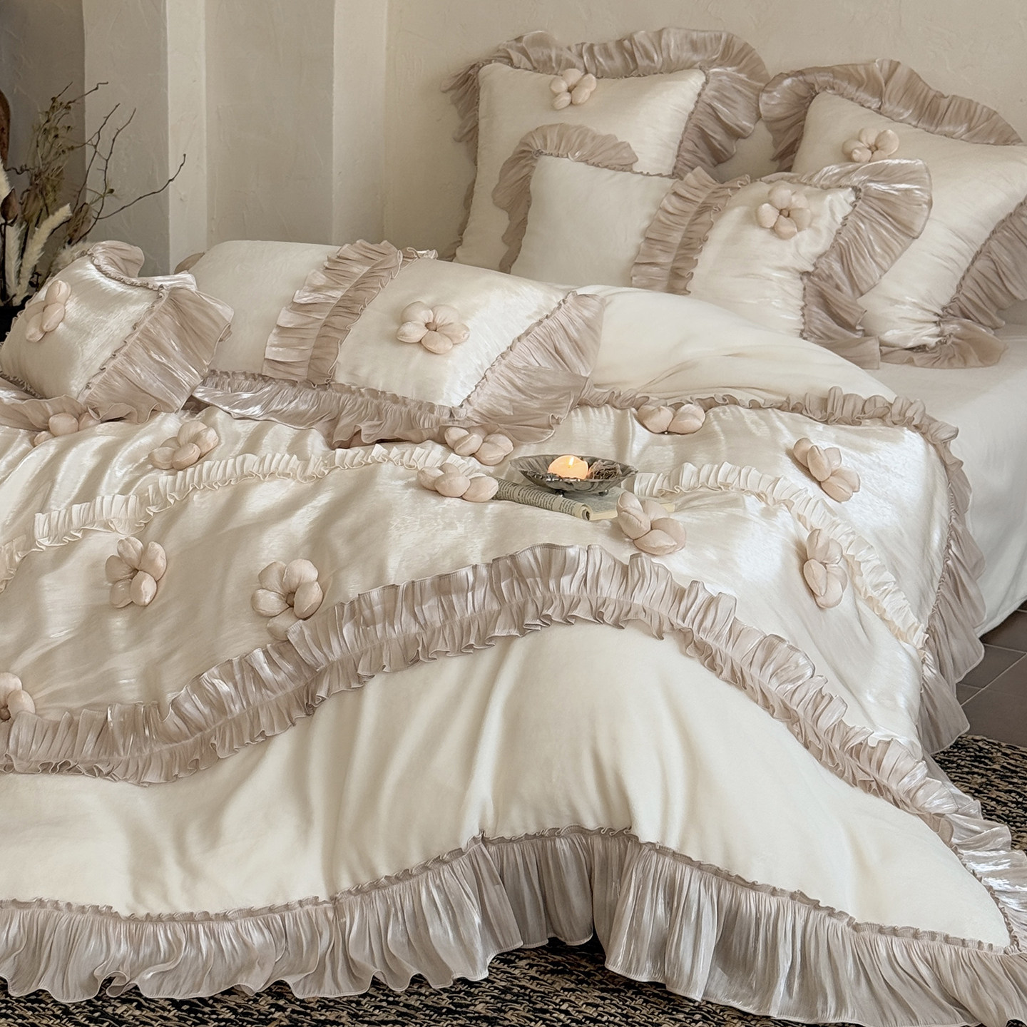 法式少女心立体花朵冬季牛奶绒四件套加厚保暖床单被套珊瑚绒床品